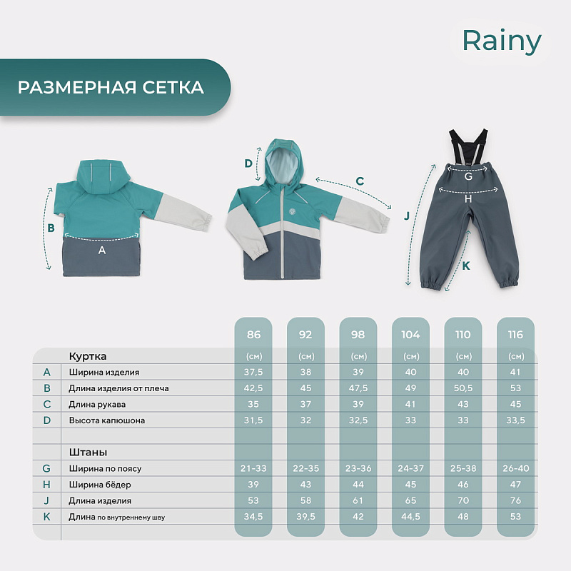 Какое детство без прогулок по лужам? Детский демисезонный костюм RANT RAINY подарит малышу невероятное ощущение уюта и тепла. Модель покорит вас: инновационным влагоотталкивающим и ветронепроницаемым материалом софтшелл, тщательно продуманными деталями кроя, лаконичным исполнением, комфортным лекалом.