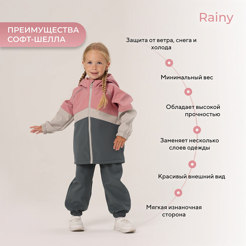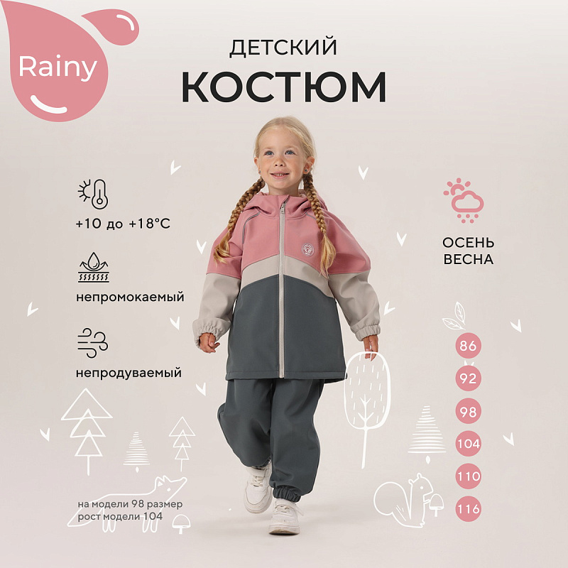 Какое детство без прогулок по лужам? Детский демисезонный костюм RANT RAINY подарит малышу невероятное ощущение уюта и тепла. Модель покорит вас: инновационным влагоотталкивающим и ветронепроницаемым материалом софтшелл, тщательно продуманными деталями кроя, лаконичным исполнением, комфортным лекалом.