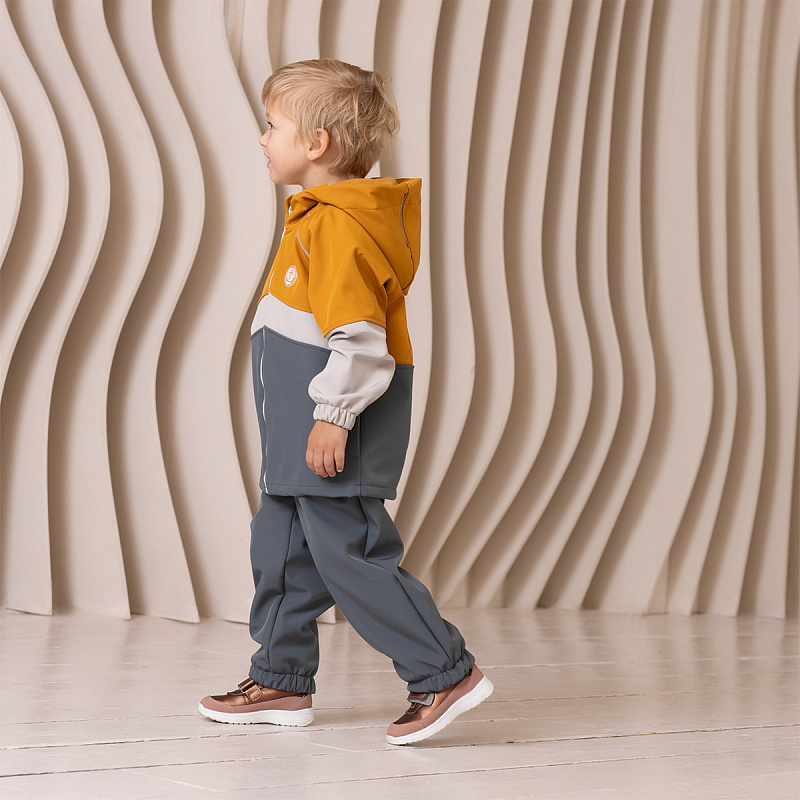 модель выполнена из высокотехнологичной ткани софтшелл, специально разработанной для комфортного занятия спортом, альпинизмом, туризмом. Поэтому что бы ни делал ребенок, он всегда останется сухим.