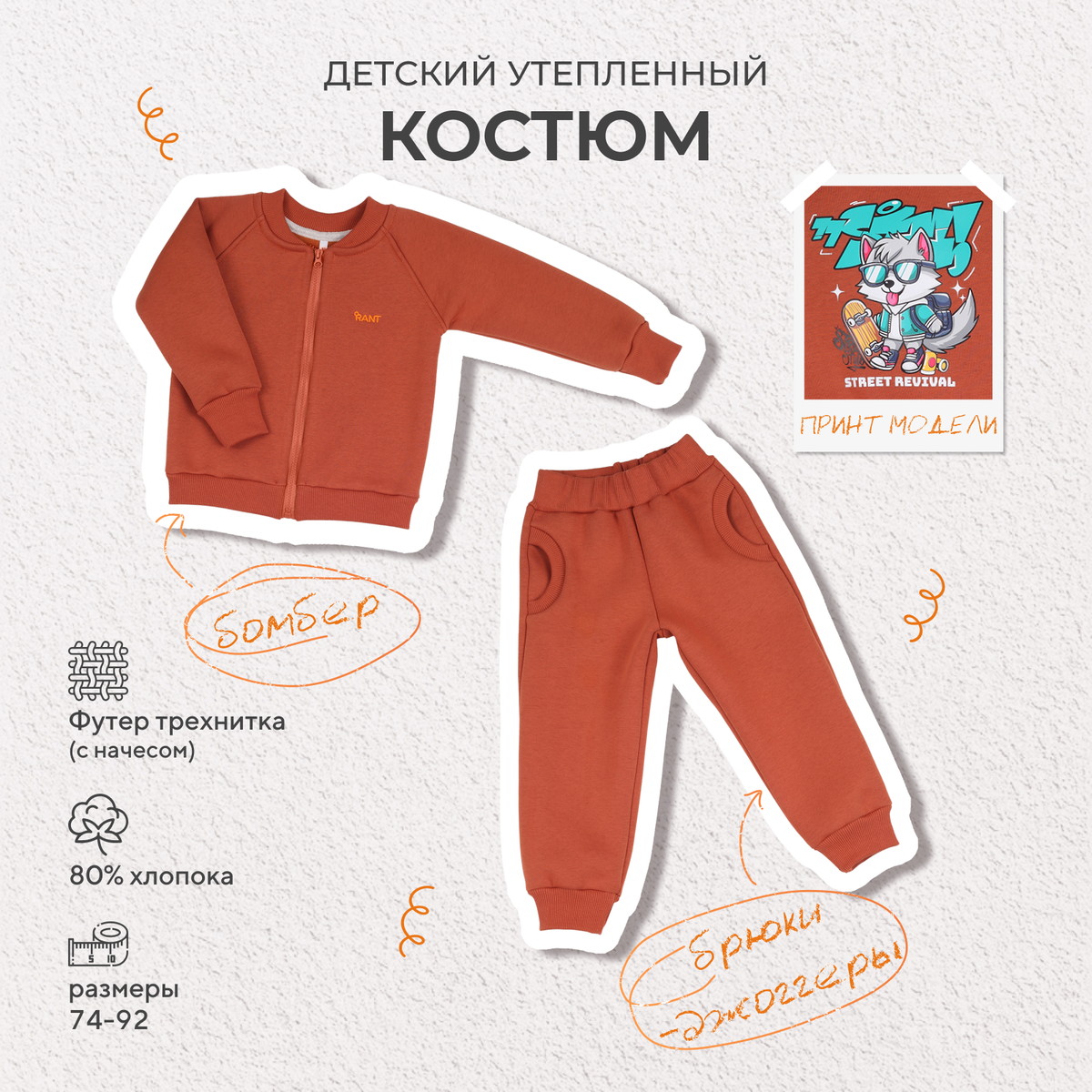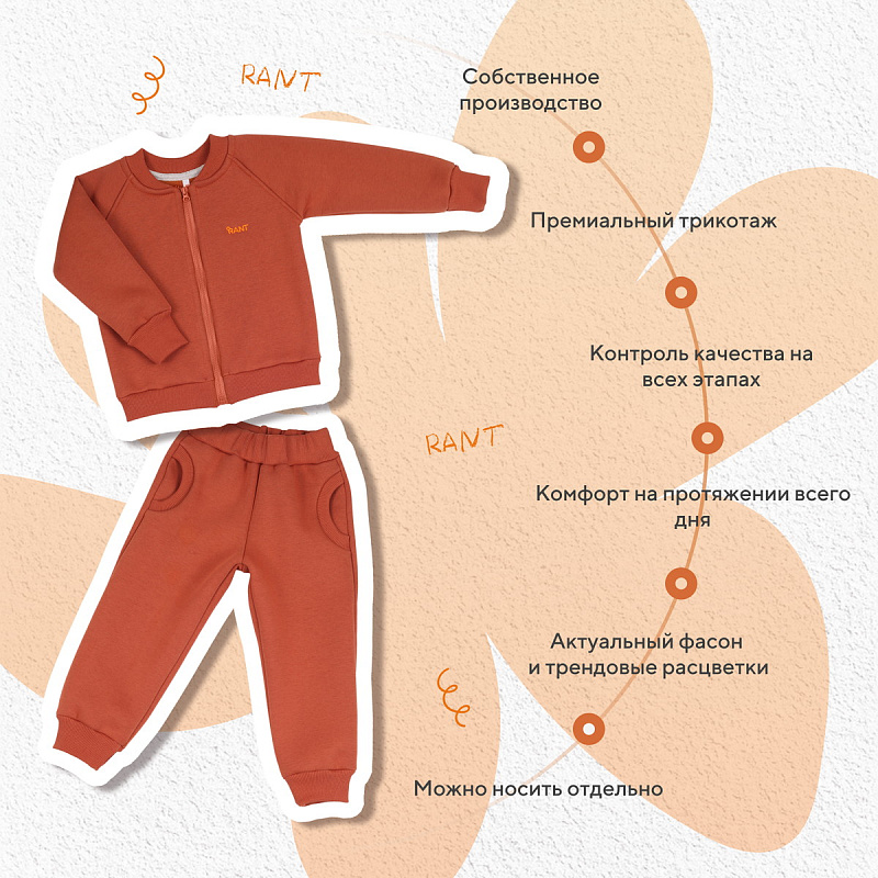 Уютный и стильный костюм RANT WILD подарит малышу особенный комфорт. Модель покорит вас: лаконичным исполнением, комфортным лекалом, премиальными тканями.