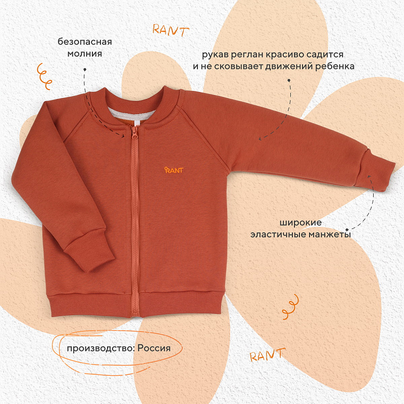 рукав реглан, которым дополнен бомбер, красиво садится и не сковывает движений ребенка