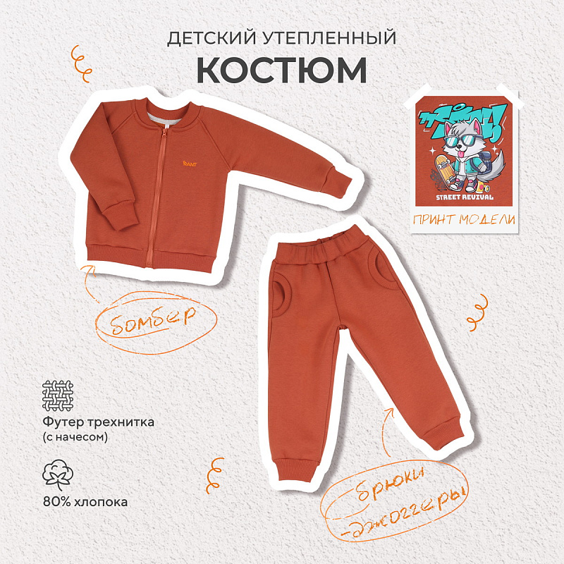 Уютный и стильный костюм RANT WILD подарит малышу особенный комфорт. Модель покорит вас: лаконичным исполнением, комфортным лекалом, премиальными тканями.