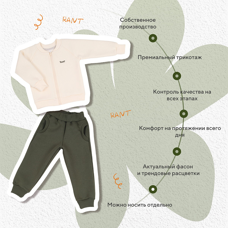 Уютный и стильный костюм RANT WILD подарит малышу особенный комфорт. Модель покорит вас: лаконичным исполнением, комфортным лекалом, премиальными тканями.