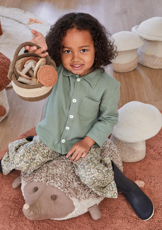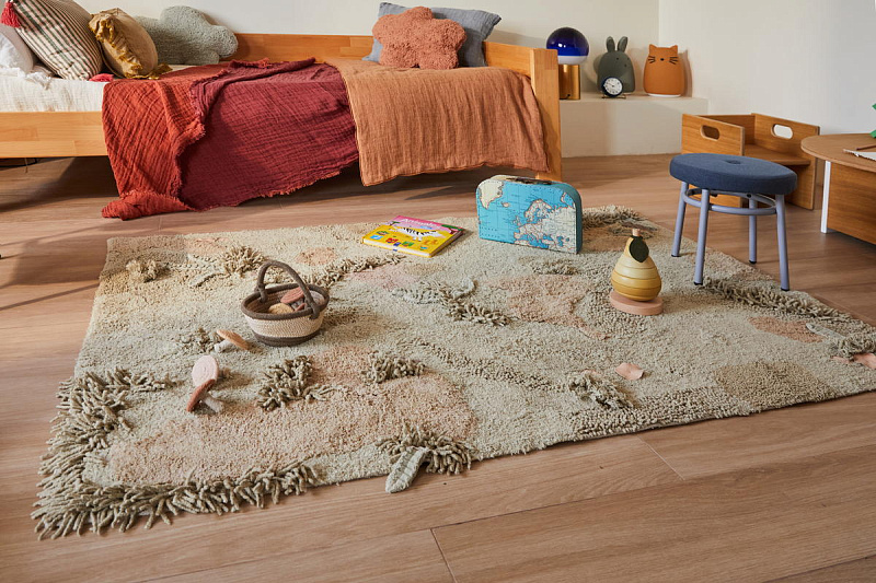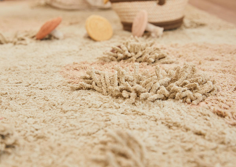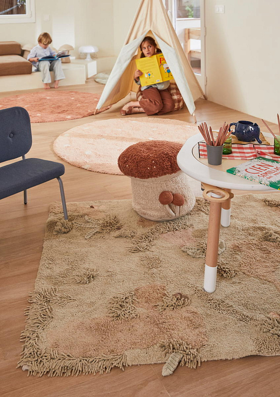 Нежные оттенки бежевого, коричневого и горчичного цвета окутают вас уютом и настроят на расслабление и отдых. А юные исследователи обязательно оценят стилизованные фигурные ковры и аксессуары и придумают с ними множество интересных развивающих игр. Ковры и аксессуары из коллекции «Грибы» сделают любое помещение теплее и уютнее и освободят вас от лишней уборки, благодаря возможности стирки в машинке.