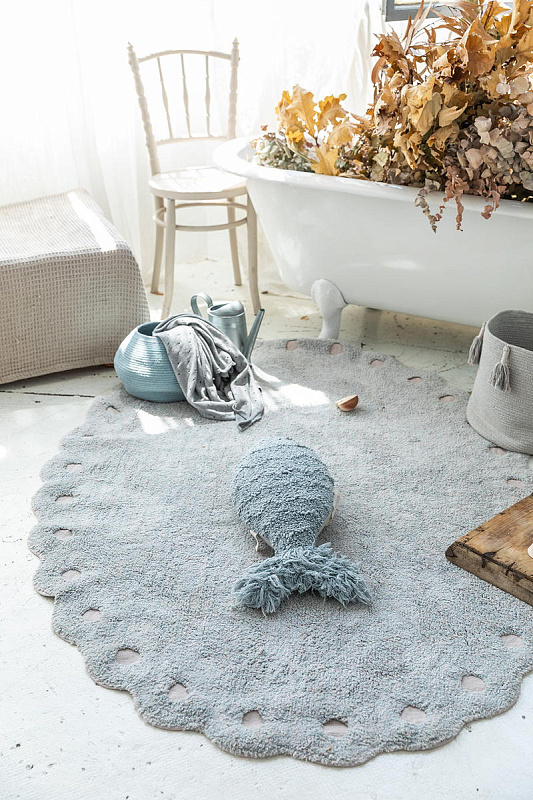 Lorena Canals Сосновая шишка жемчужно-голубой 130х180 см - овальный ковер в форме сосновой шишки прекрасно подойдет для создания уюта в детской, спальне и даже в ванной комнате, благодаря небольшому размеру.