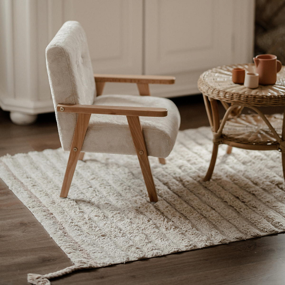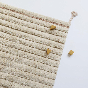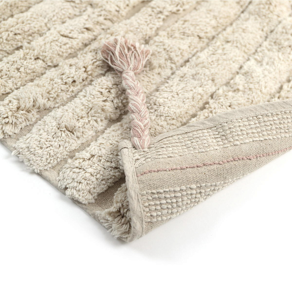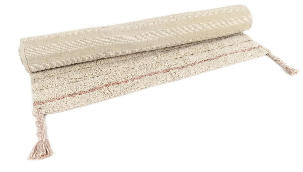 Dalia Nude — бархатный ковер, в виде крупных полос в бежевом цвете хлопкового цвета и подчеркнутый линией телесного розового цвета с двух сторон ковра. Красивые косы, сочетающие два цвета, украшают края ковра, придавая пространству стильную атмосферу и изюминку. Dalia облегчит вашу повседневную жизнь благодаря тому что его можно стирать в машине. Этот ковер изготовлен из чистого хлопка и имеет маркировку OEKO-TEX, что говорит о безусловной гарантии безопасности для конечного потребителя. Маркировка демонстрирует, что все материалы — от самой ткани до красителей, использованные в производстве, безвредны и нетоксичны.