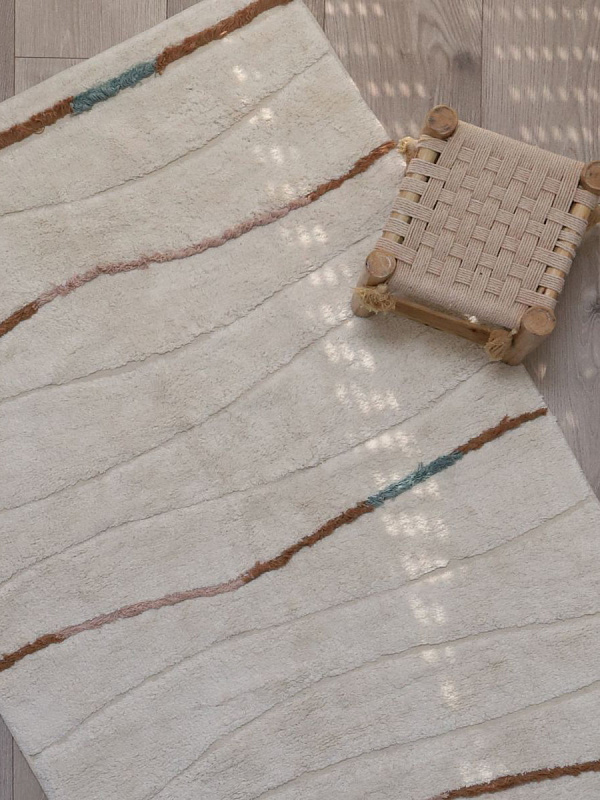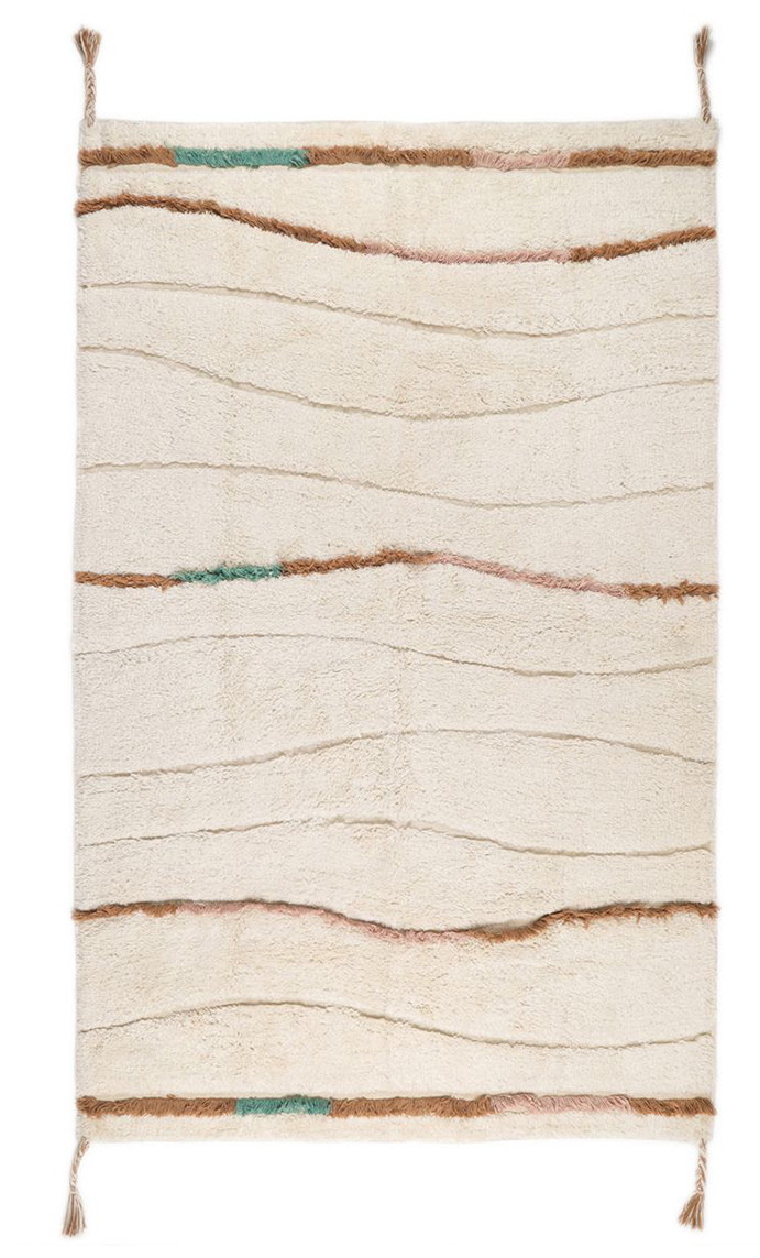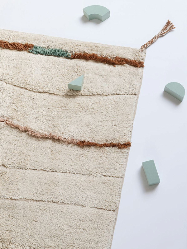 Создайте уникальный дизайн с Serena - ковром с волнистыми линиями натурального оттенка хлопка, бежевого цвета, подчеркнутым линиями бахромы, выполненной в нежных тонах карамели, бежевого и зеленого. Вы не сможете устоять перед карамельными и бежевыми косами, украшающими концы ковра. Serena идеально подойдет для детской комнаты, гарантируя комфортное времяпрепровождение!