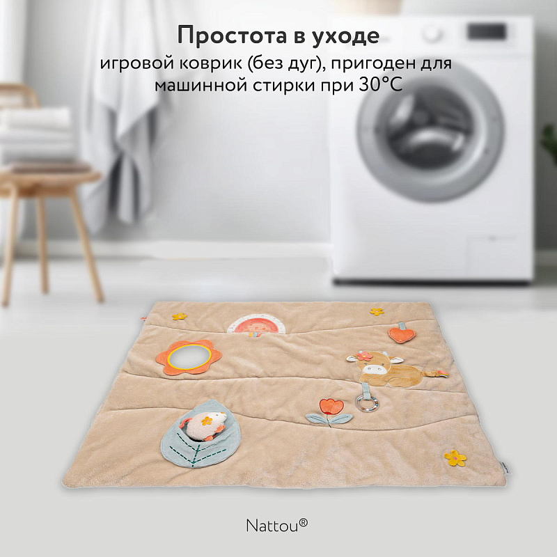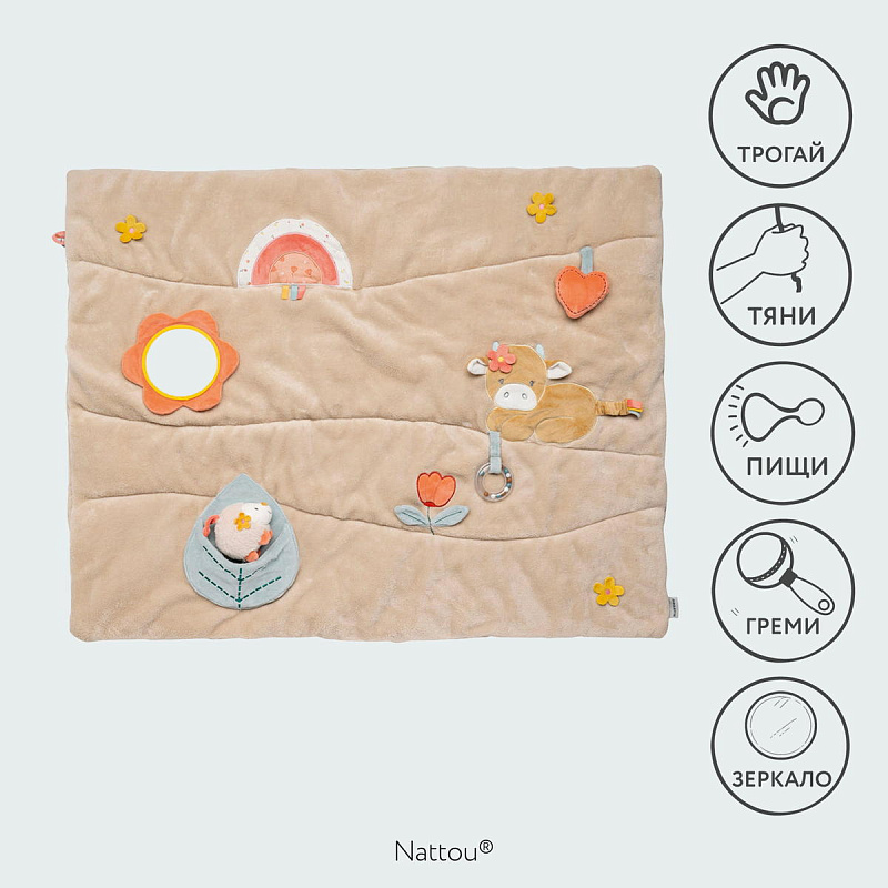 Коврик детский развивающий игровой Nattou MILA ZOË LANA Корова, Ёжик, Кот 266390Нет оценокХарактеристики