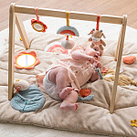 Создайте игровое пространство для своего малыша с помощью прямоугольного игрового коврика Мила, Лана и Зоя. Этот мягкий игровой коврик размером 80х100 см содержит множество забавных игрушек, которые можно найти и взять в руки: милое сердечко с пищалкой, погремушку и кольцо для прорезывания зубов, цветок с зеркальцем и мятой бумагой, различные этикетки и милого ежика Зою с погремушкой. Мягкая подкладка гарантирует максимальный комфорт. Объедините этот красивый игровой коврик с подходящей деревянной аркой (приобретается отдельно)!