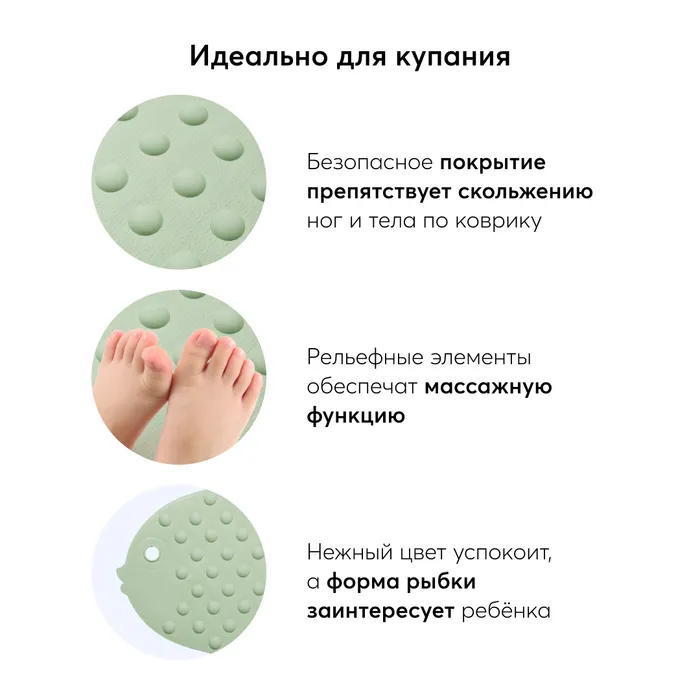 Коврик для купания Happy Baby Fish, sage