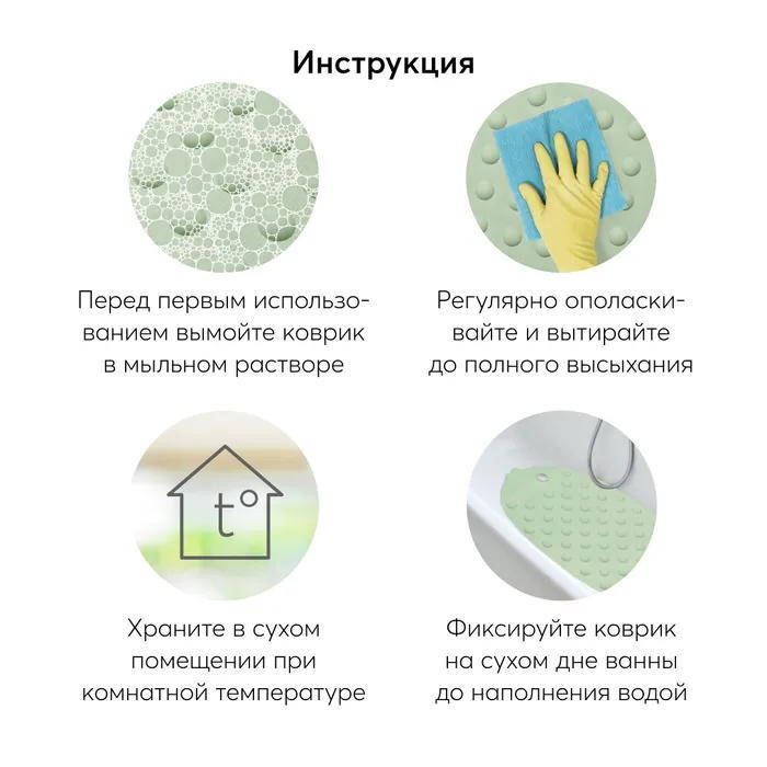 - За счет присосок такой коврик надежно фиксируется в ванной или в поддоне.