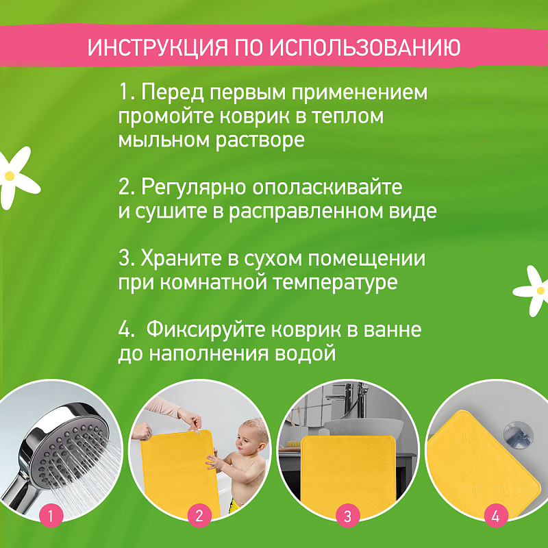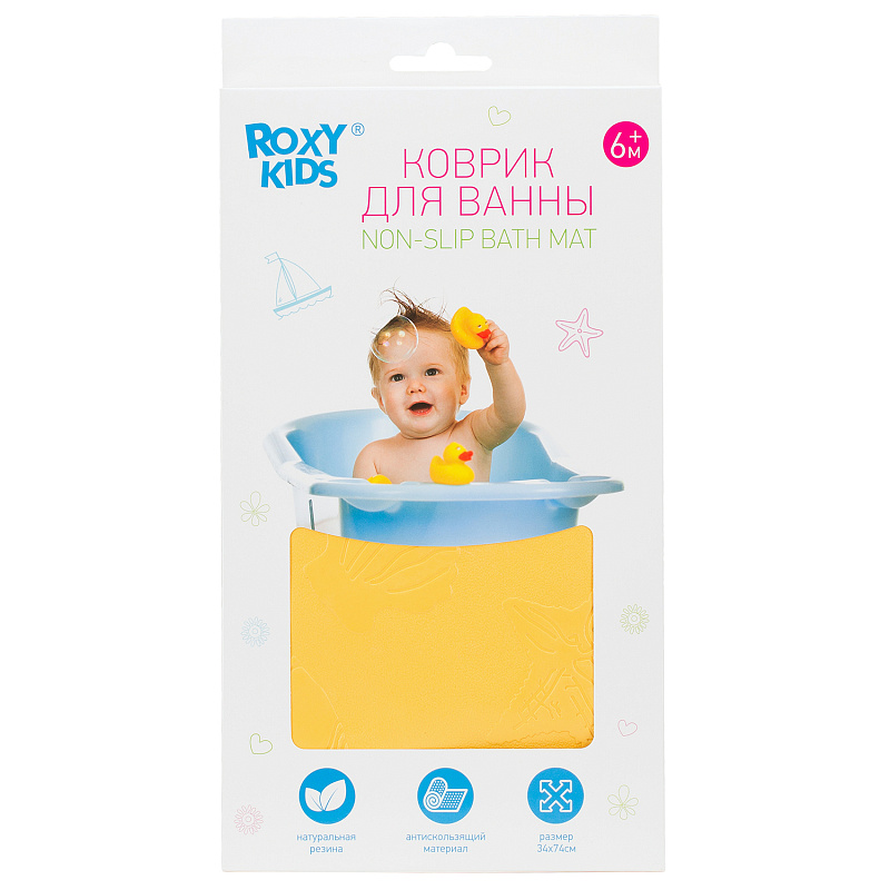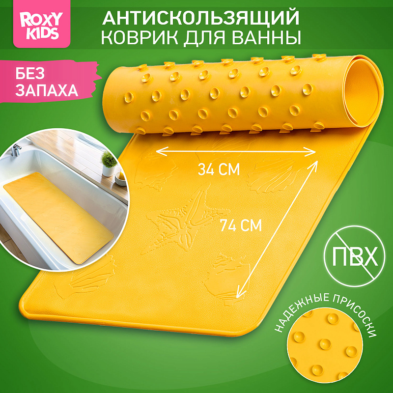 Коврик резиновый для ванны Roxy-Kids антискользящий 34х74 см BM-3474-Y жёлтыйНет оценокХарактеристики