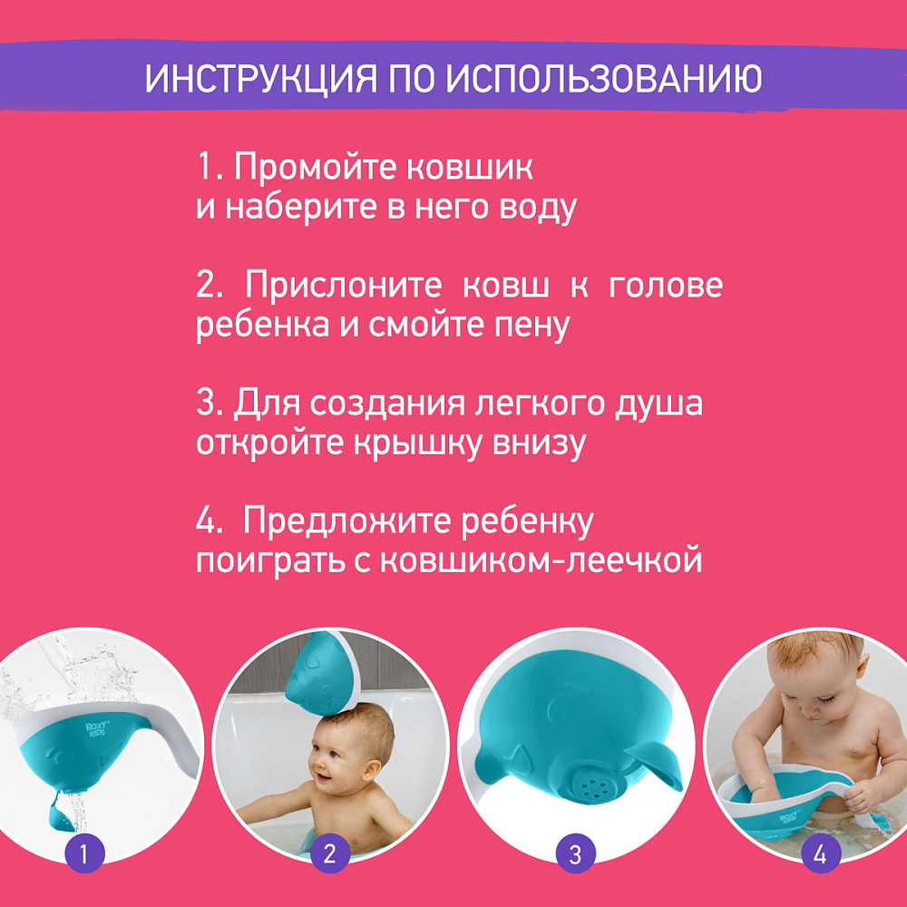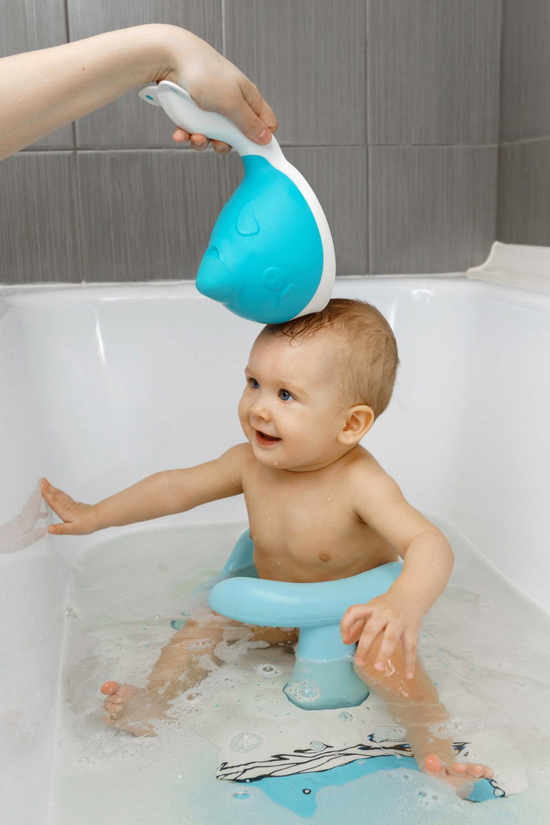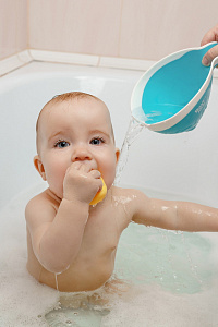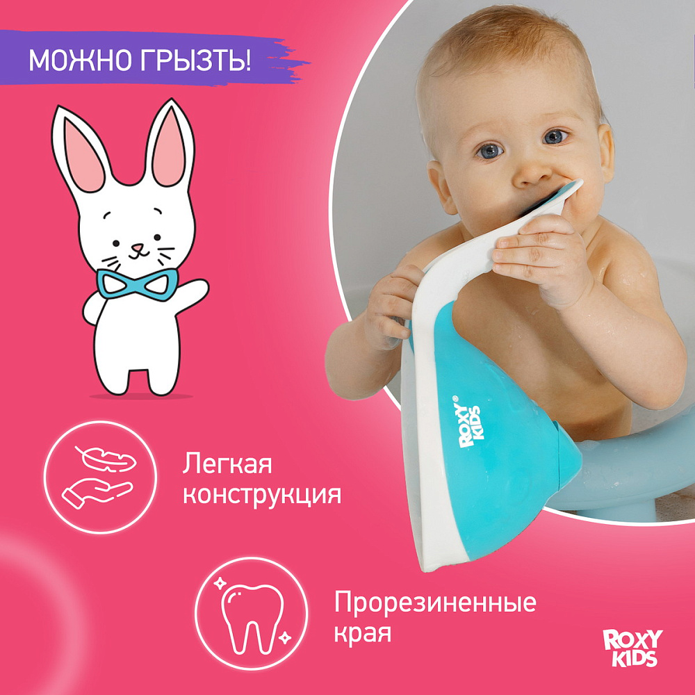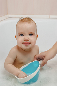 Мягкий край из гипоаллергенного термоэластопласта можно прислонить к голове малыша,чтобы вода и мыло не попали в глазки