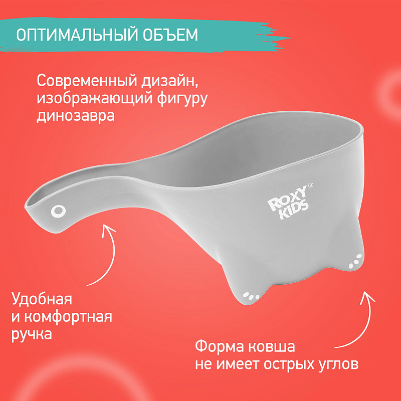 Ковшик Roxy-Kids Dino Scoop для мытья головы серый