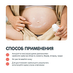 Крем снижает риск образования растяжек (стрий), помогает уменьшить интенсивность уже появившихся. Способствует восстановлению рогового слоя и улучшению его качества. Повышает тонус кожи, стимулирует естественное увлажнение. Подходит для всех проблемных зон: грудь, живот, бедра, руки. Можно применять с первого дня беременности.