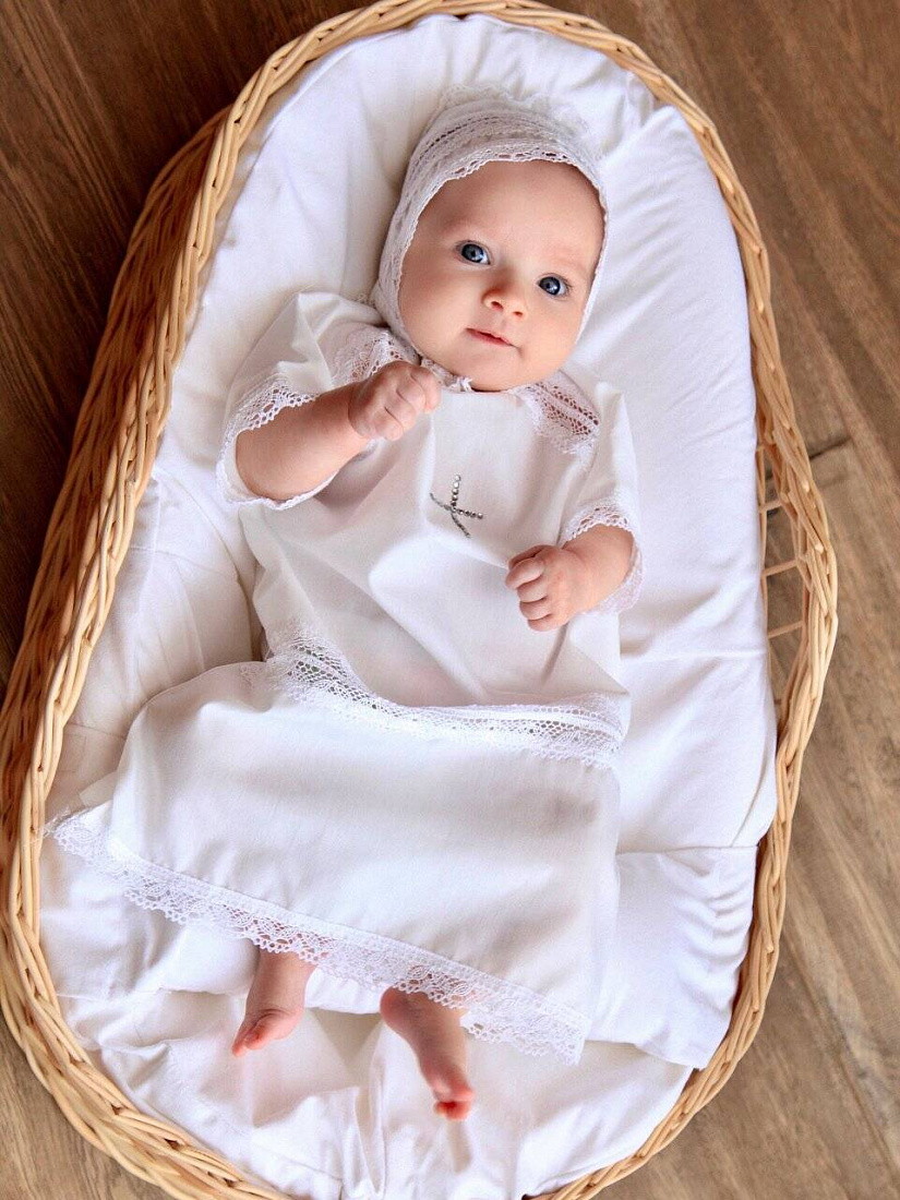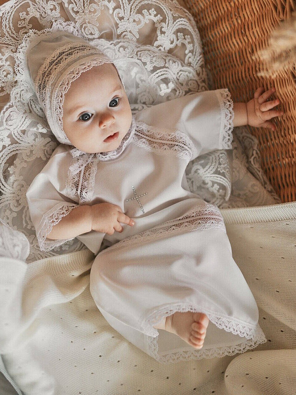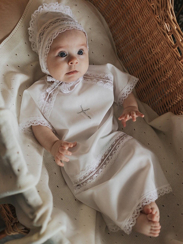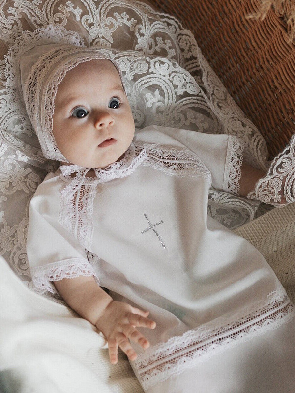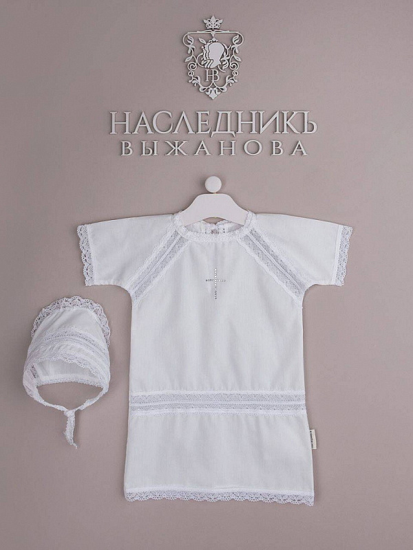 Крестильный набор НаследникЪ Выжанова (рубашка+чепчик) КР-1 ЧЗ белый