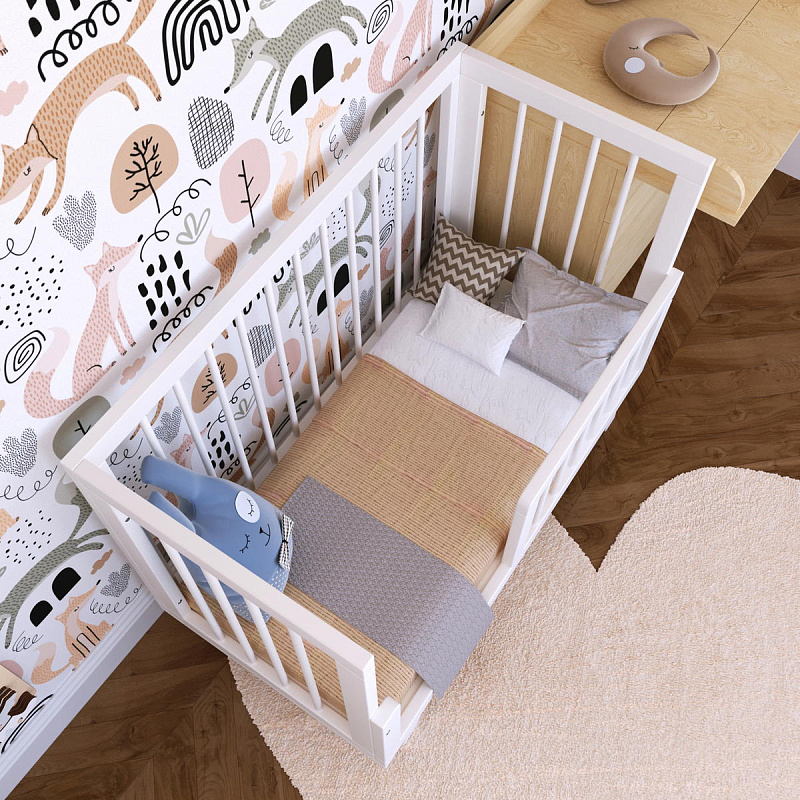 - Реечные стенки обеспечивают свободный воздухообмен и визуальный контакт малыша с родителями.