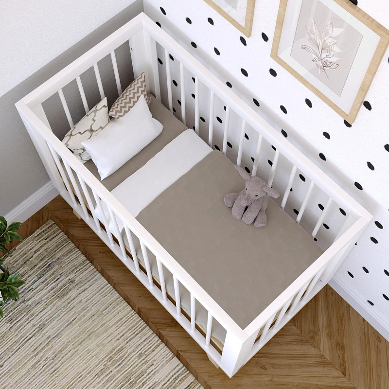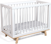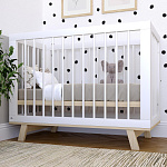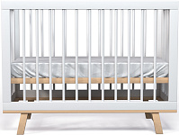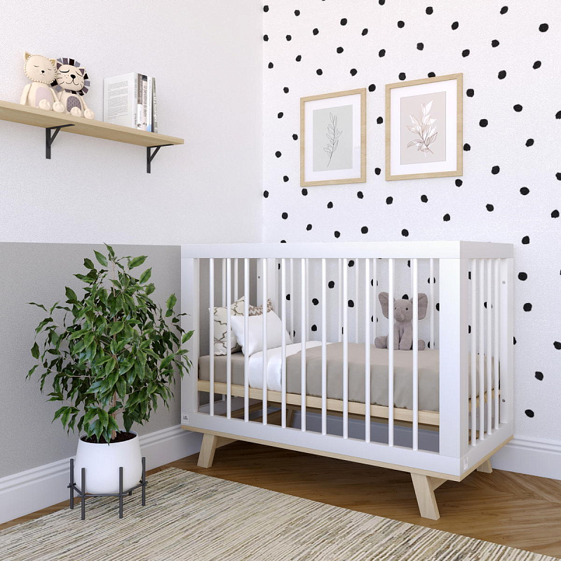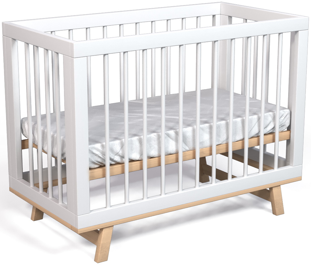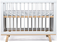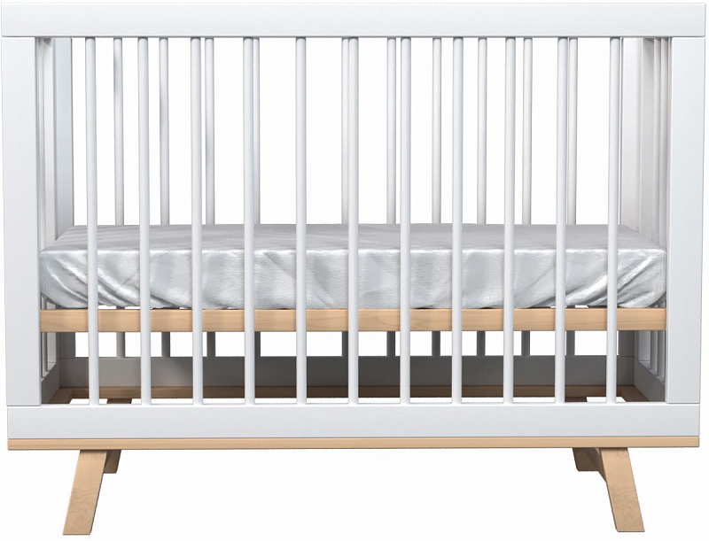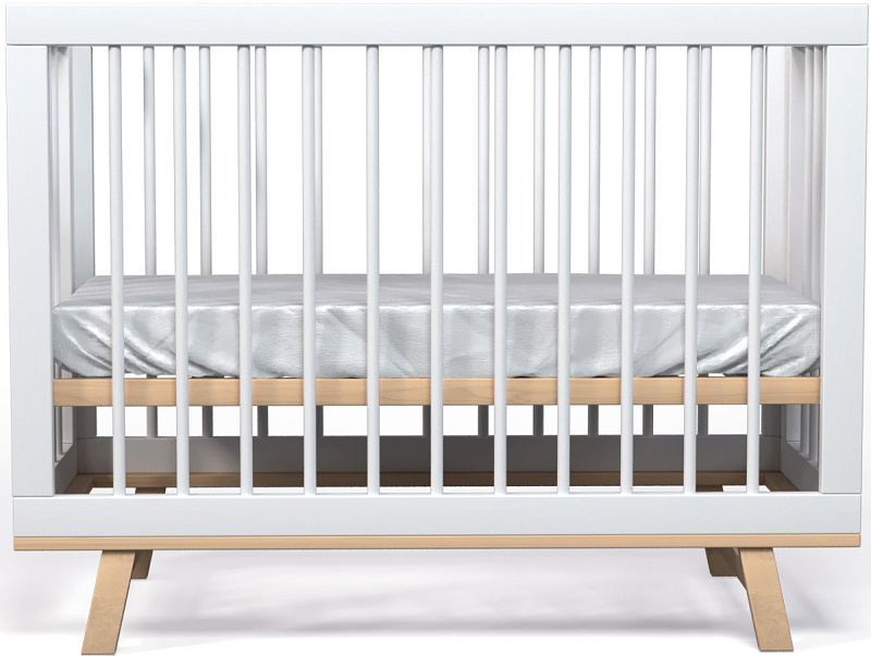 За безопасность ребенка отвечают натуральные материалы, более массивный и потому устойчивый каркас кроватки и стенки из надежных круглых реек, идеальных для захвата детскими ручками.