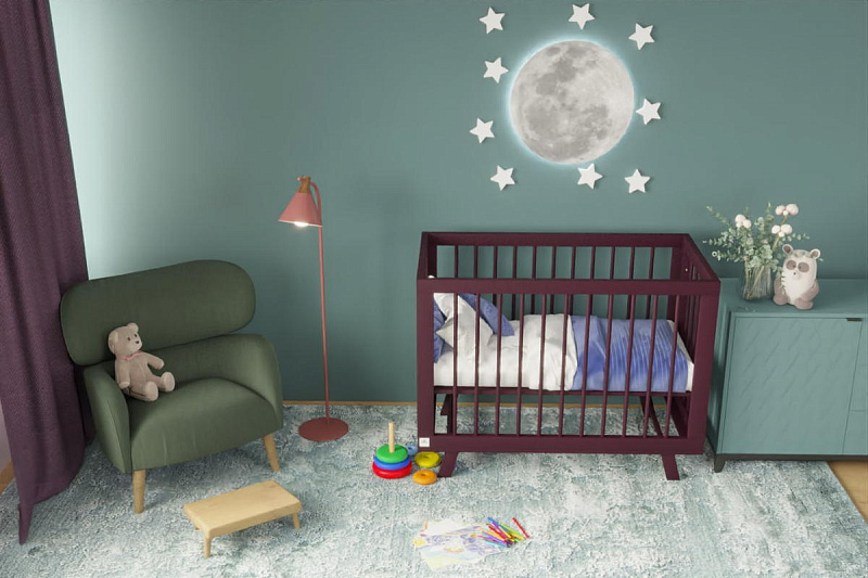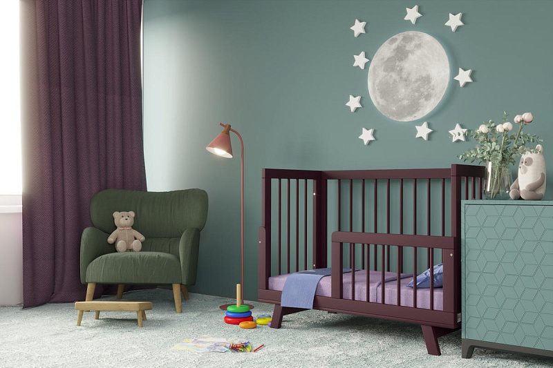 Реечные стенки обеспечивают свободный воздухообмен и визуальный контакт малыша с родителями.