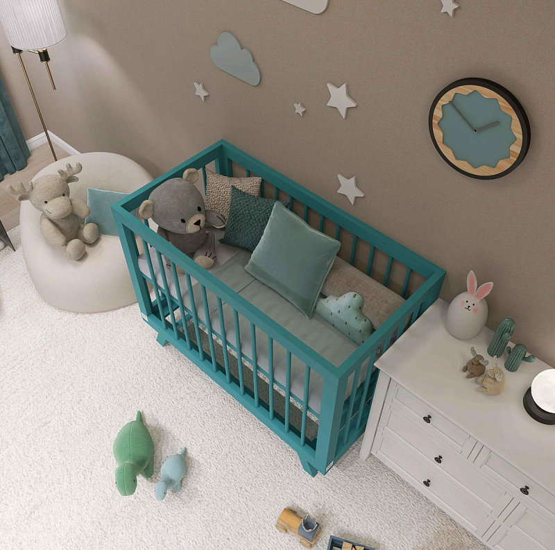 За безопасность ребенка отвечают натуральные материалы, более массивный и потому устойчивый каркас кроватки и стенки из надежных круглых реек, идеальных для захвата детскими ручками.