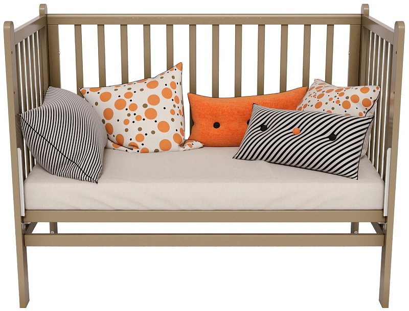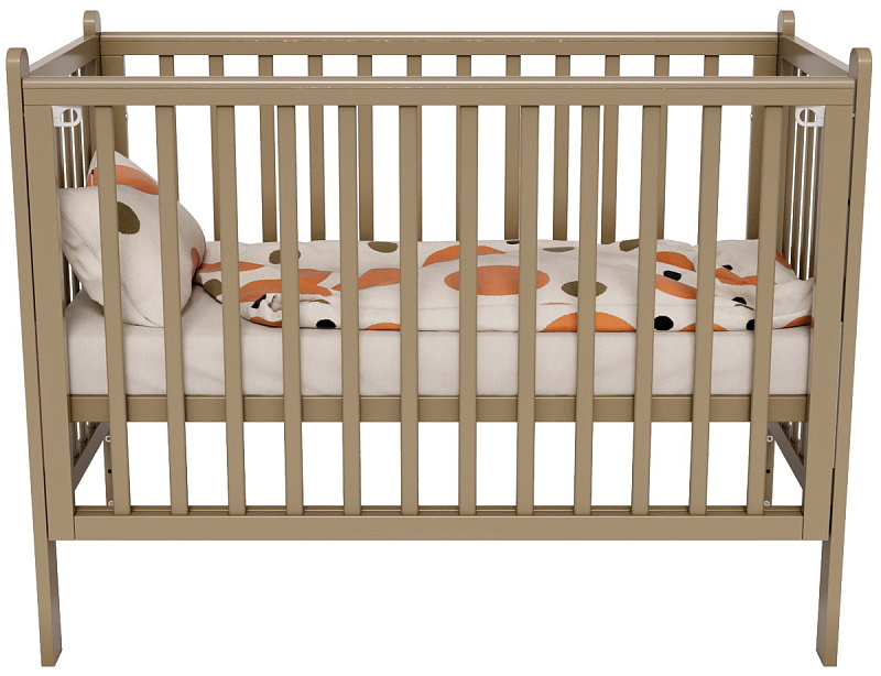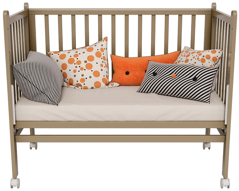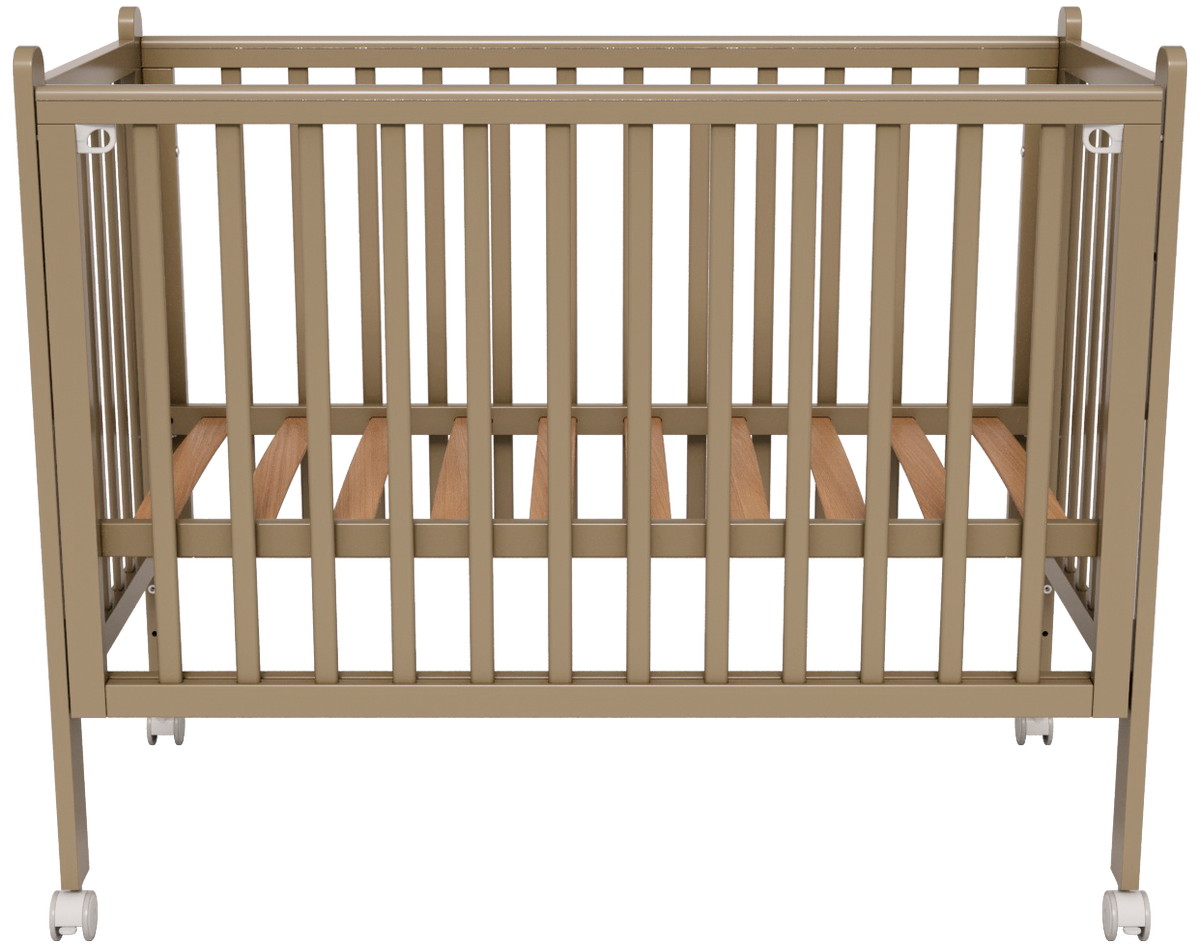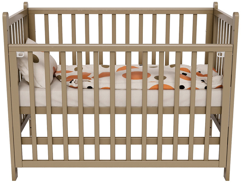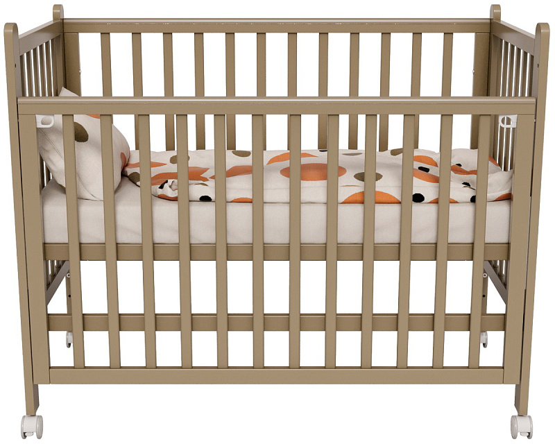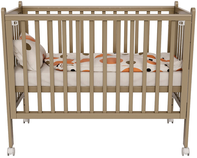 Четыре колеса, два из которых оснащены стопорами, обеспечивают мобильность и устойчивость. Безопасное лакокрасочное покрытие, словно нежная вуаль, оберегает сон малыша.