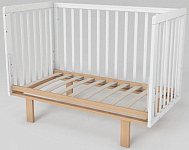 Скругленные углы и накладки ПВХ, защищающие малыша от травм десен и зубов, делают кроватку максимально безопасной. Две съемные ламели позволяют подросшему ребенку самостоятельно залезать и вылезать из кроватки, способствуя развитию его самостоятельности.