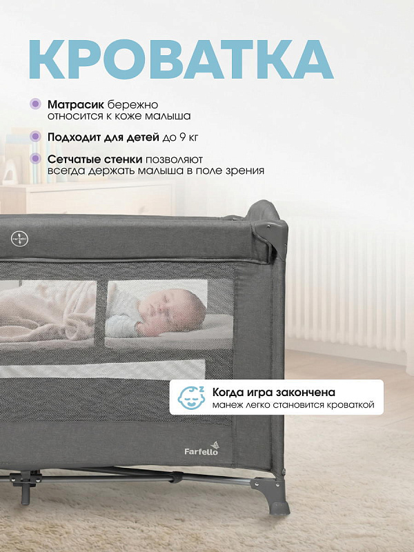 Манеж-кроватка «Dolly» — это не просто спальное место, а надёжное «личное пространство» малыша, где он может спать, играть и расти в безопасности.