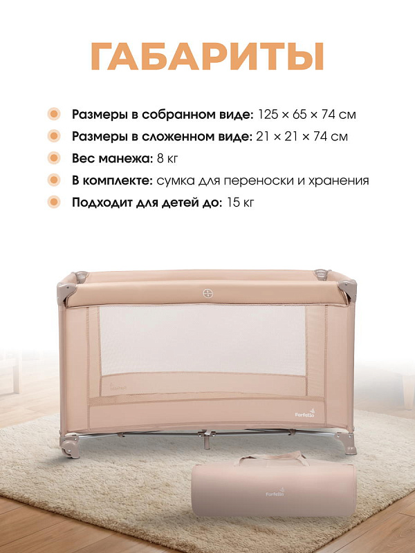 Детский манеж FUN — это надёжное и практичное решение для малыша, где он может играть, спать или отдыхать в полной безопасности. Его удобная складная конструкция делает его прекрасным спутником дома, в гостях, на даче или в путешествии.