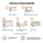 В режиме люльки CoZee XL представляет собой лёгкое и портативное решение, позволяющее вам держать ребёнка рядом в течение дня. Люлька идеально подходит для сна в разных частях дома: её можно плавно покачивать или фиксировать в неподвижном положении в зависимости от настроения малыша. Для этого нужно снять нижние ножки кроватки и установить отдельный комплект аксессуаров, включающий опорные ножки и поручни для качания. (Комплект аксессуаров для люльки продаётся отдельно).Колыбель: приставная или стационарная (аксессуары приобретаются отдельно)