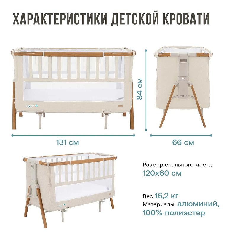 При использовании в качестве прикроватной кроватки CoZee XL работает так же, как и оригинальная модель CoZee, обеспечивая безопасное и комфортное спальное место с рождения до примерно 6 месяцев. Её можно использовать как отдельно стоящую кроватку или для совместного сна, опустив откидную боковину и надёжно прикрепив её к родительской кровати. Продуманный механизм складывания делает кроватку удобной для транспортировки и хранения, а дышащие сетчатые боковины обеспечивают циркуляцию воздуха для безопасного сна.Детская кроватка 120х60 (Аксессуары для кровати (приобретаются отдельно): матрас 120х60 см, наматрасник 120х60 см, постельное белье 120х60 см)
