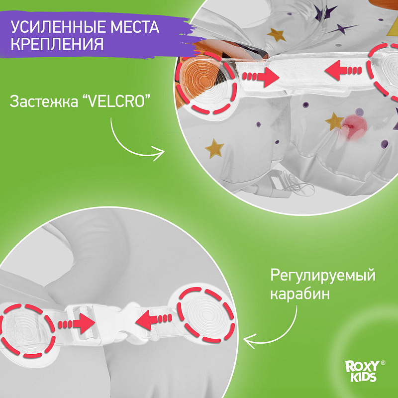 - Надежная фиксация обеспечивается двумя удобными регулируемыми липучками и карабином.