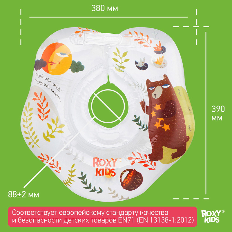 - В конструкции предусмотрен ниппель с обратным клапаном, который удержит воздух даже с открытым колпачком. В комплекте вы найдете сказку для малыша.