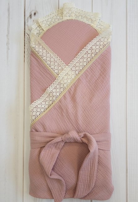 Состав: ткань двухслойный Муслин 100% хлопок. Размер 90х90 см. Жесткий вкладыш (синтепон пл500гр), поясок. Украшен хлопковым кружевом.