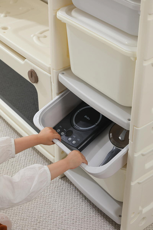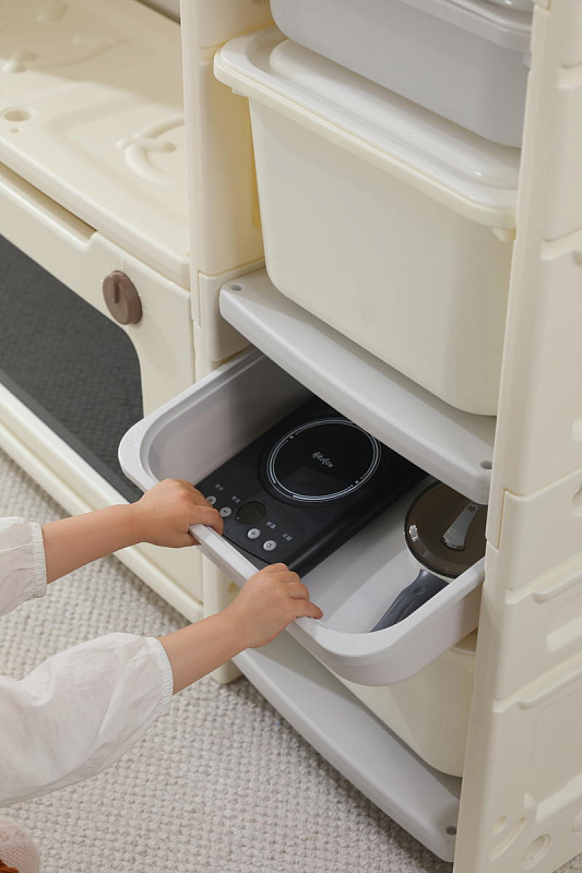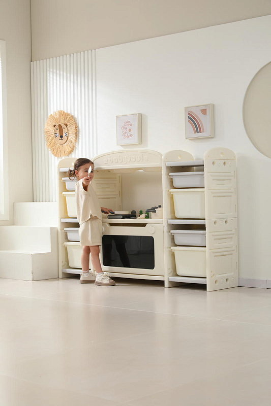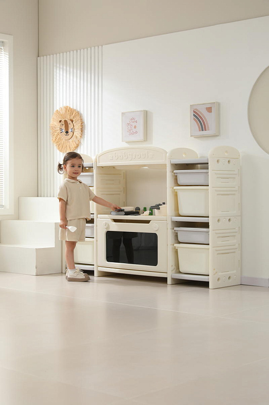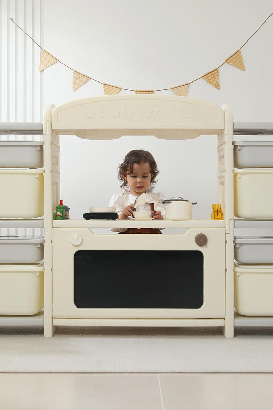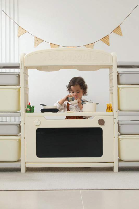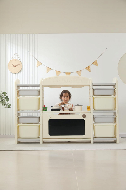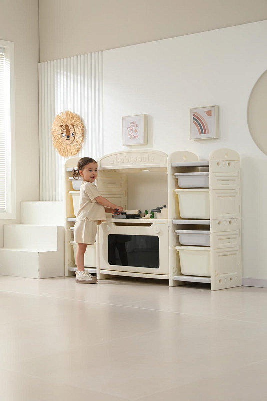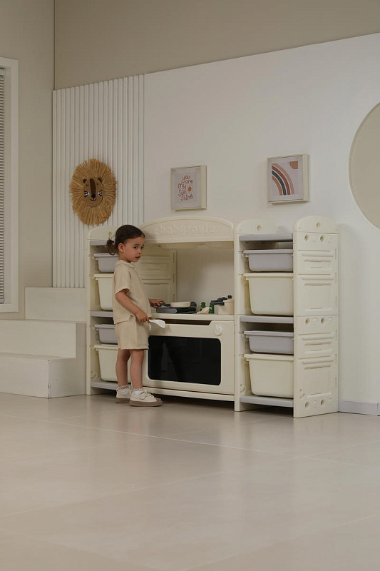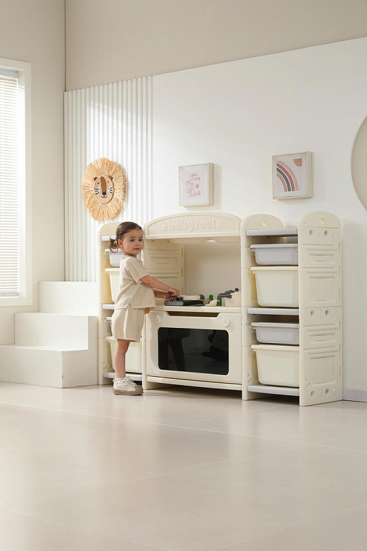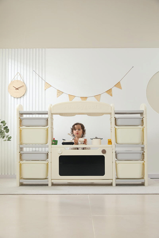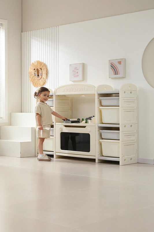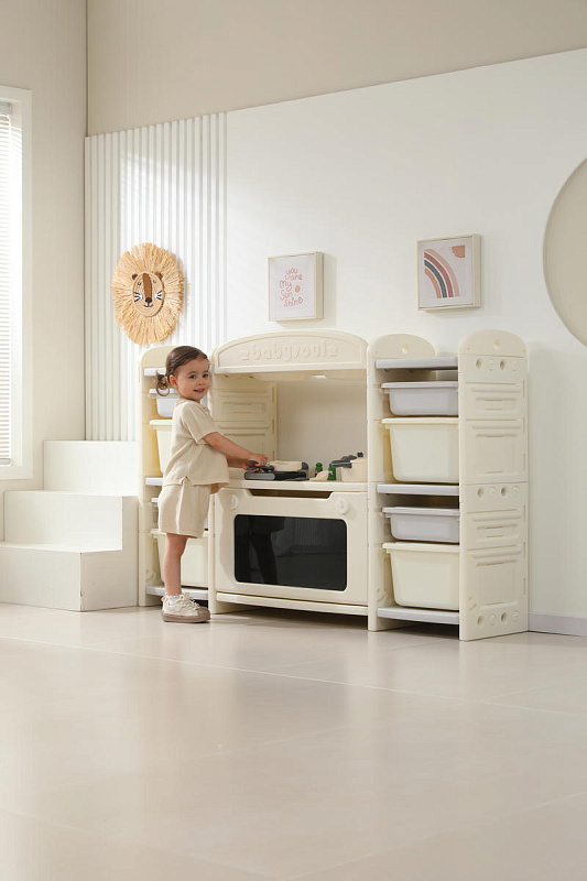 Развивающая игрушка кухня по системе Монтессори способствует развитию мелкой моторики, логического мышления и креативности. Ребенок сможет изучать основы приготовления пищи, комбинировать различные ингредиенты и даже разрабатывать свои собственные рецепты! В процессе игры малыш научится различать продукты, кухонные принадлежности, столовые приборы и поймет, как работает плита и духовка. А вместительные ящики с крышками можно использовать для хранения посуды и продуктов из набора.