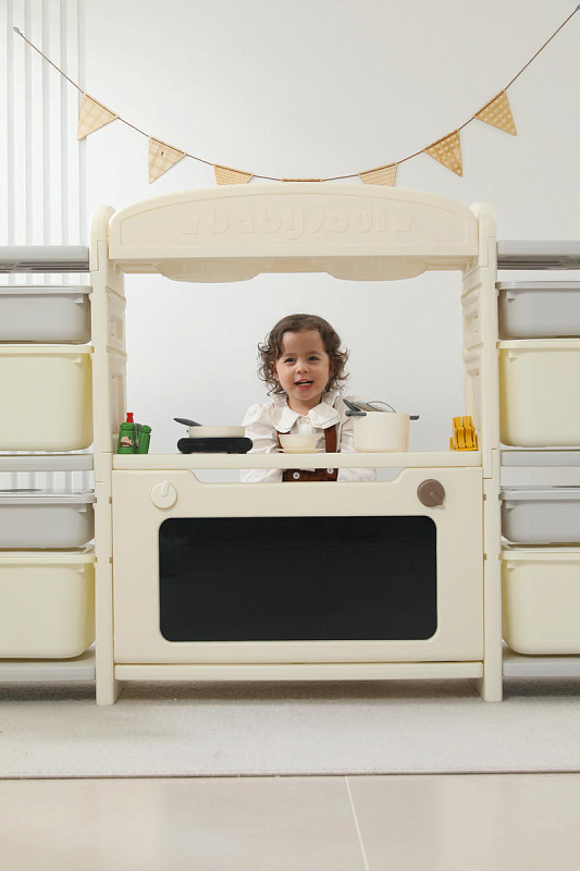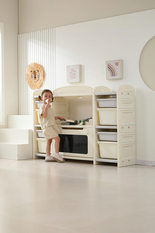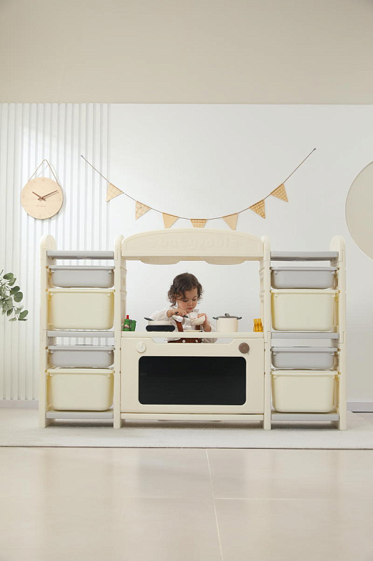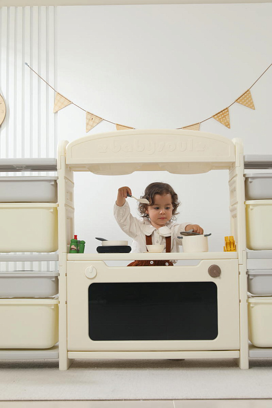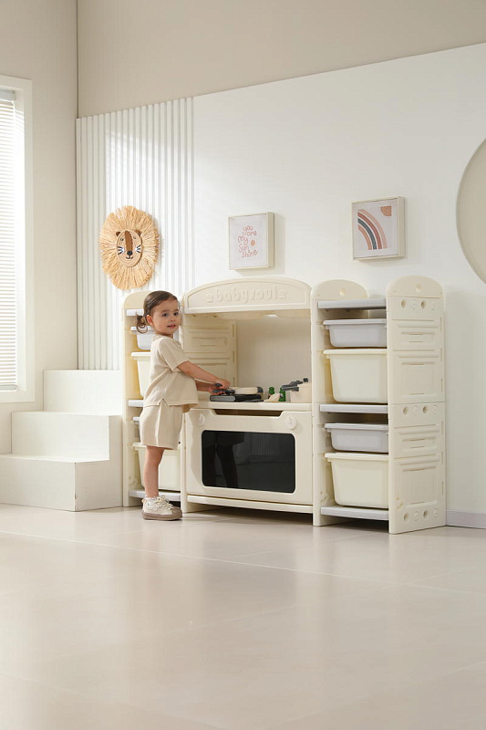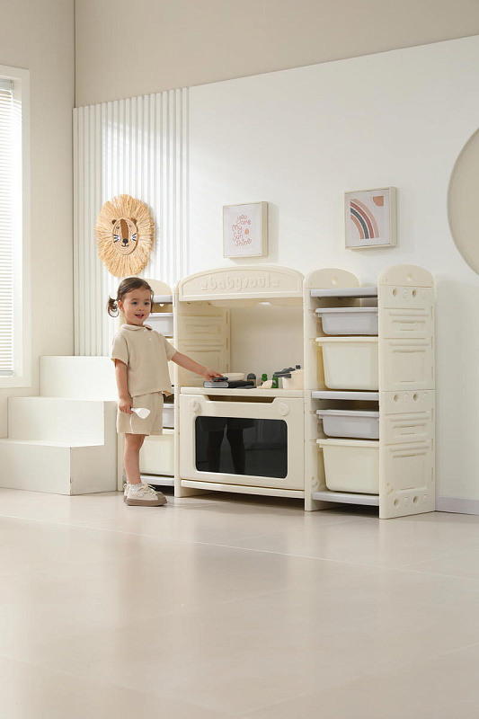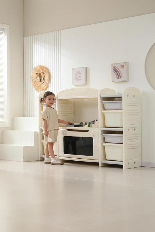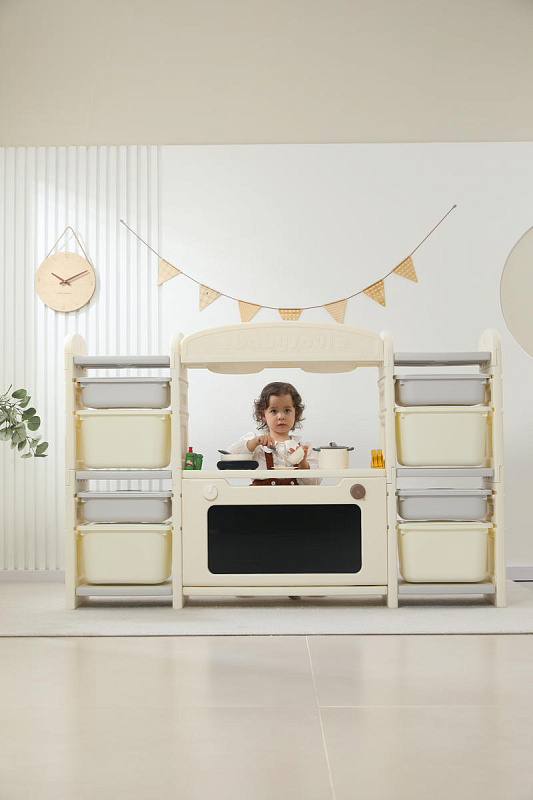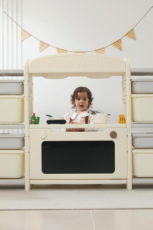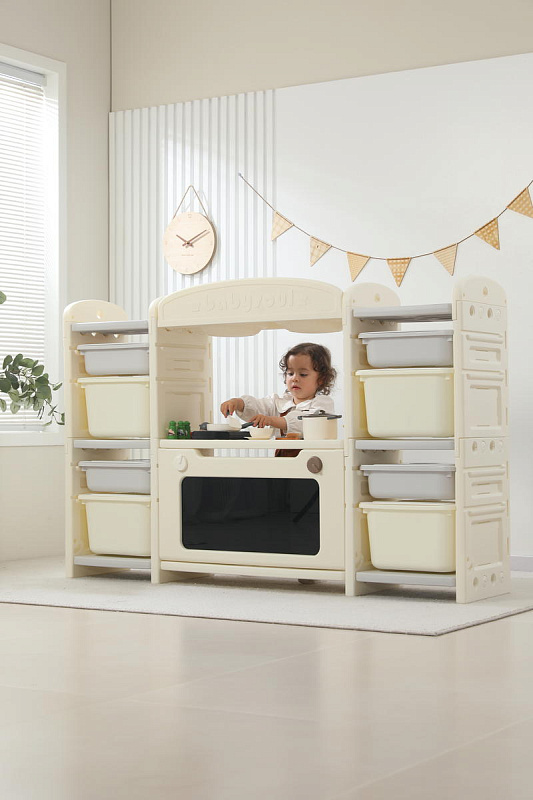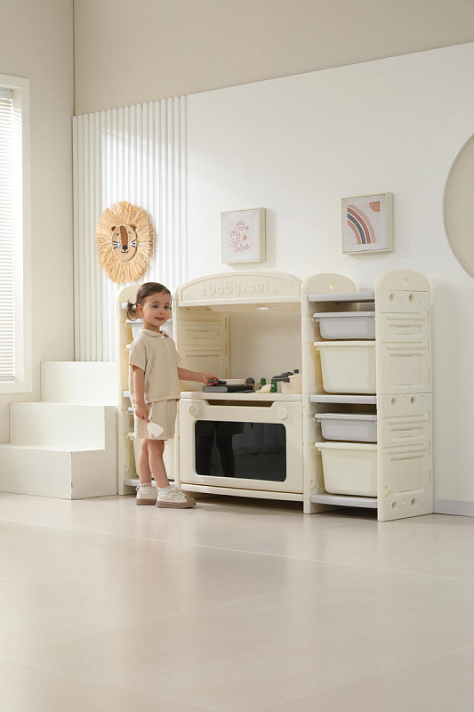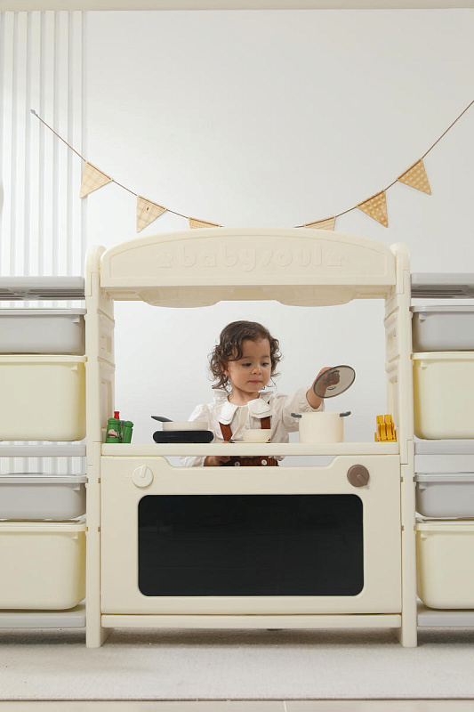 Развивающая игрушка кухня по системе Монтессори способствует развитию мелкой моторики, логического мышления и креативности. Ребенок сможет изучать основы приготовления пищи, комбинировать различные ингредиенты и даже разрабатывать свои собственные рецепты! В процессе игры малыш научится различать продукты, кухонные принадлежности, столовые приборы и поймет, как работает плита и духовка. А вместительные ящики с крышками можно использовать для хранения посуды и продуктов из набора.