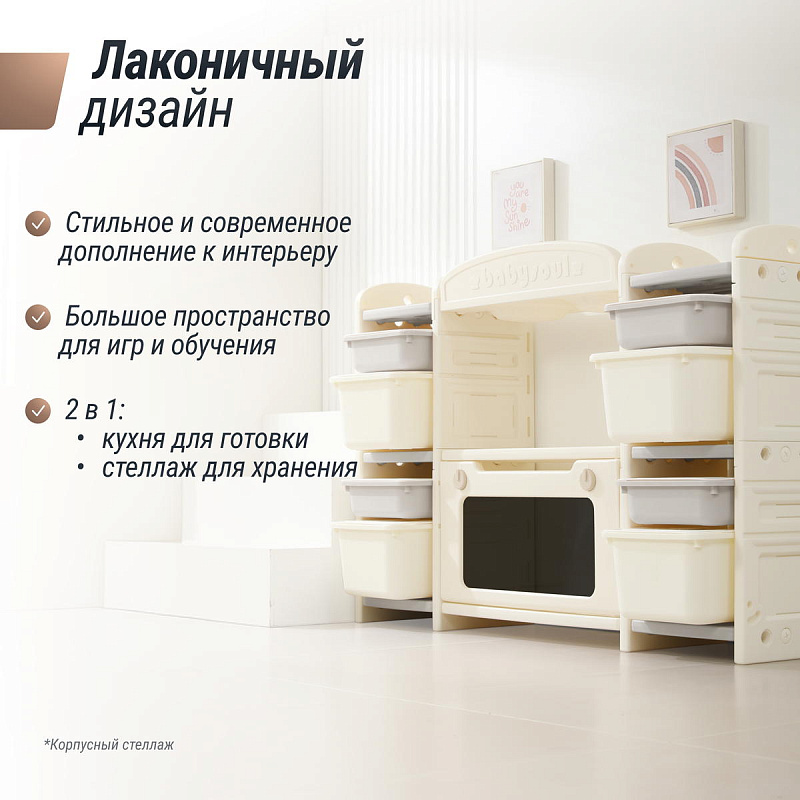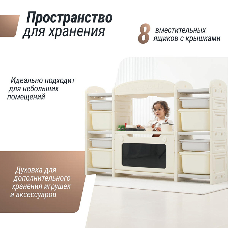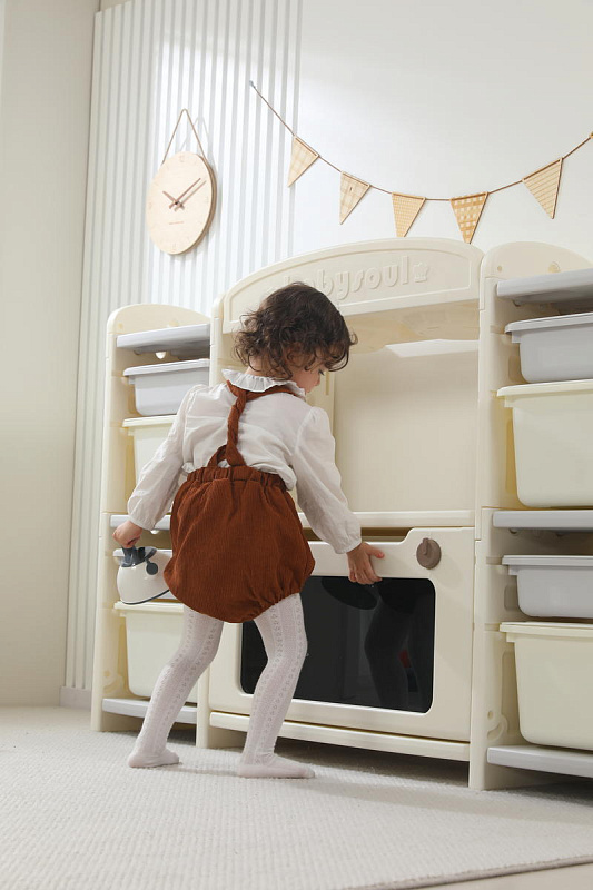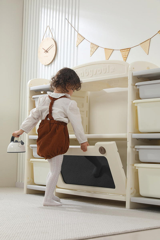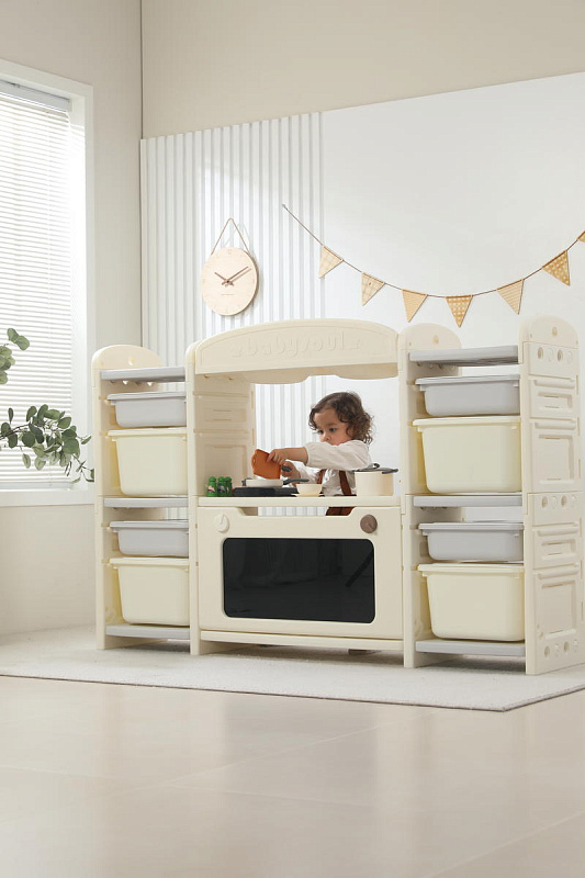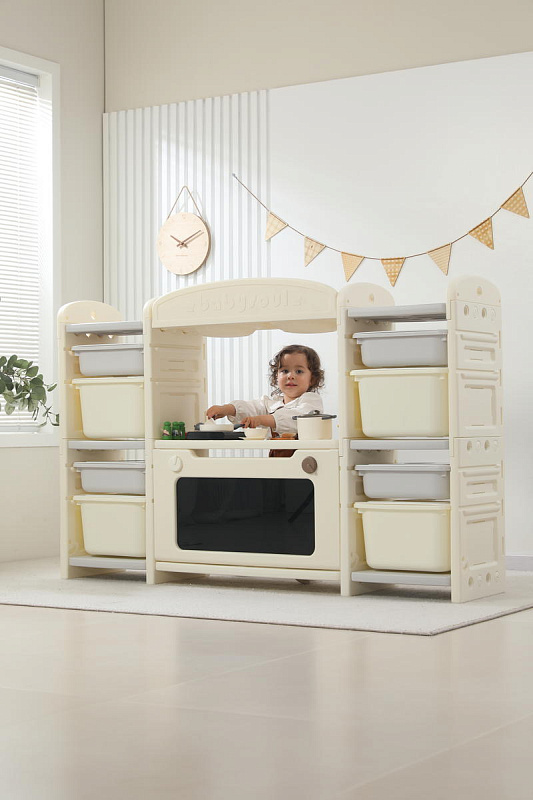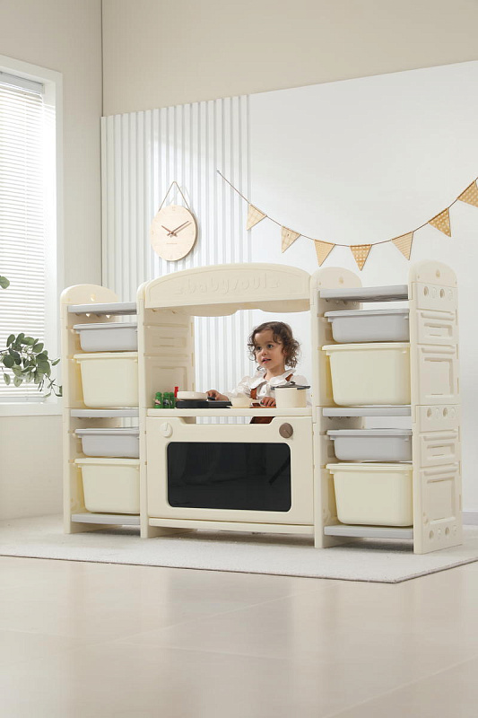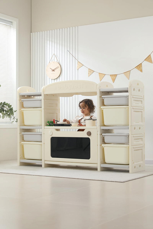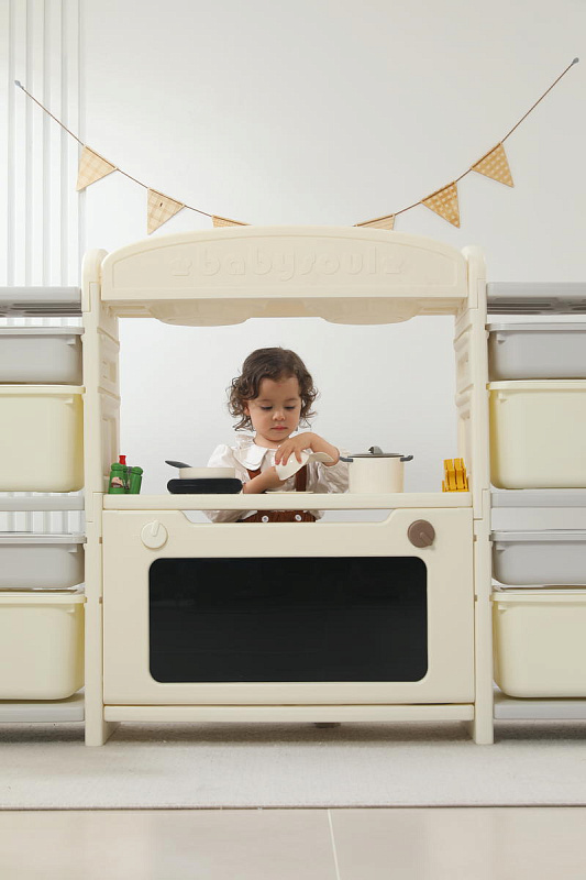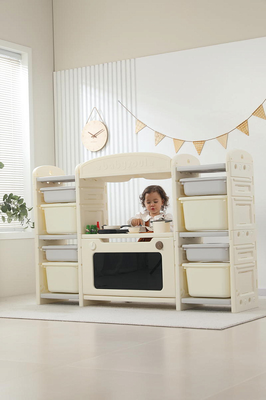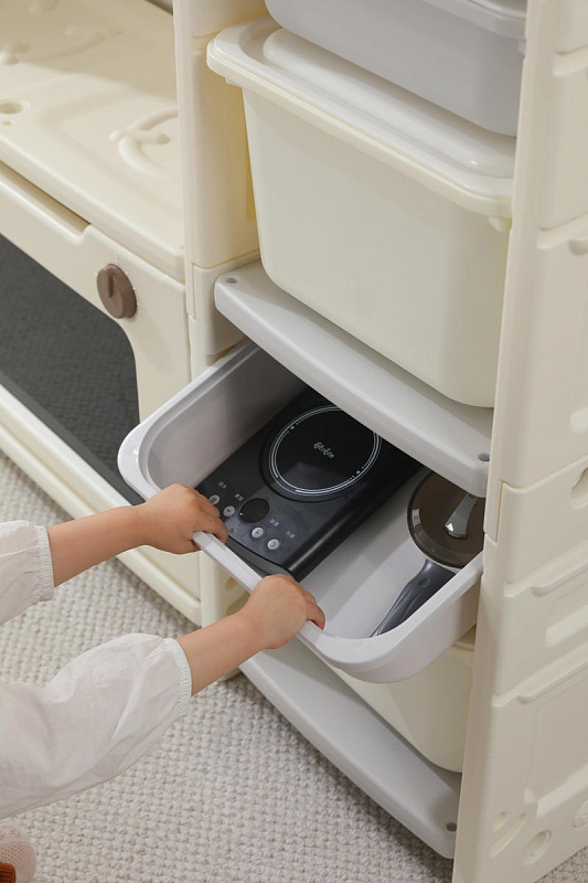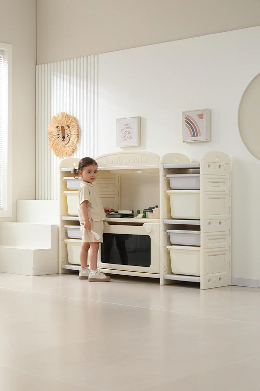 Развивающая игрушка кухня по системе Монтессори способствует развитию мелкой моторики, логического мышления и креативности. Ребенок сможет изучать основы приготовления пищи, комбинировать различные ингредиенты и даже разрабатывать свои собственные рецепты! В процессе игры малыш научится различать продукты, кухонные принадлежности, столовые приборы и поймет, как работает плита и духовка. А вместительные ящики с крышками можно использовать для хранения посуды и продуктов из набора.