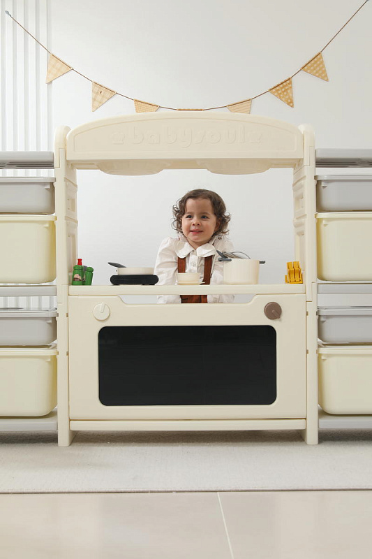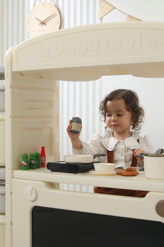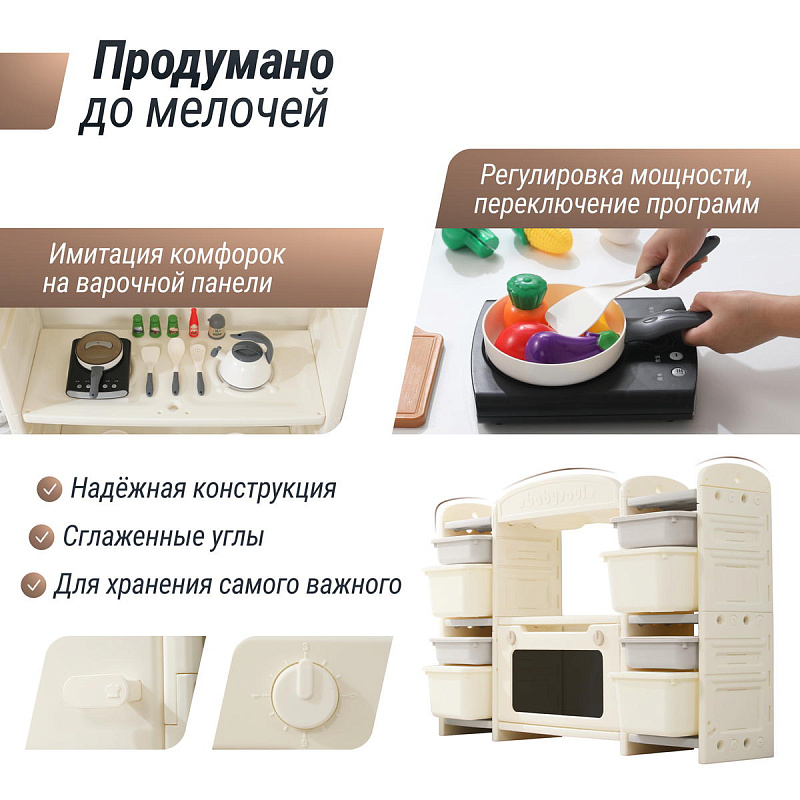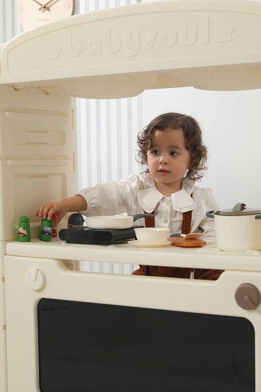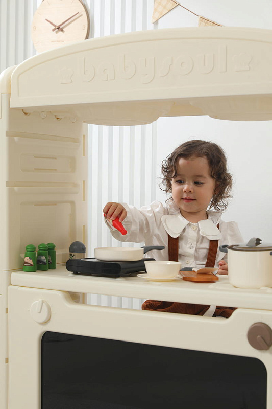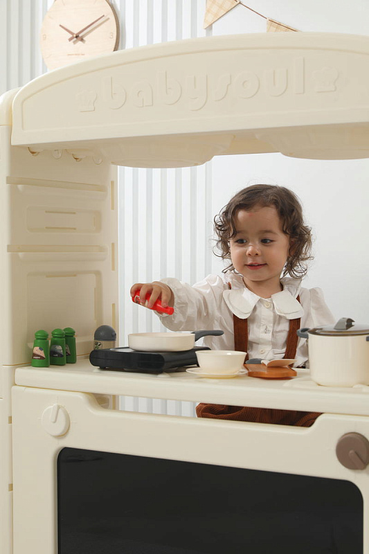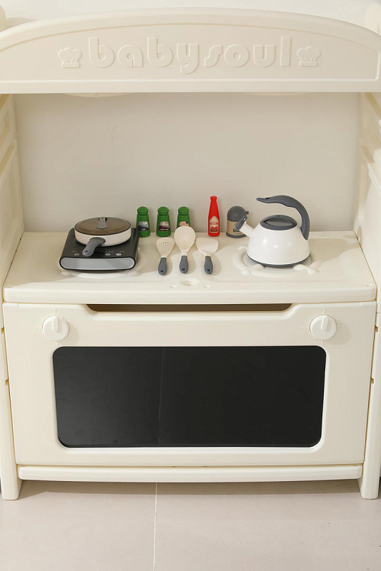Игрушечная кухня 1+ изготовлена из пищевого пластика, который прошел строгие тесты на безопасность. Мы заботимся о здоровье и безопасности маленьких пользователей, поэтому каждая деталь продумана до мелочей – сглаженные углы без зазубрин, надежная конструкция. 48 элементов кухни легко очищаются от загрязнений, что делает их идеальными для игр. Просто протрите их влажной салфеткой — и они снова готовы к игре!