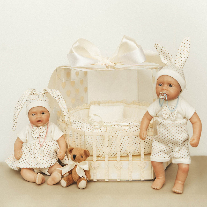 Подарочная упаковка делает момент встречи праздничным и запоминающимся. Платиновый силикон, акриловые глаза и ручная роспись создают естественный и «живой» образ. Малыш приглашает в мир заботы и приключений: первые прогулки, смешные фотосюжеты и целая коллекция «семейных» историй.