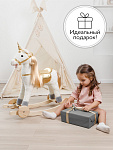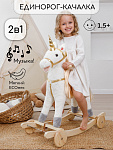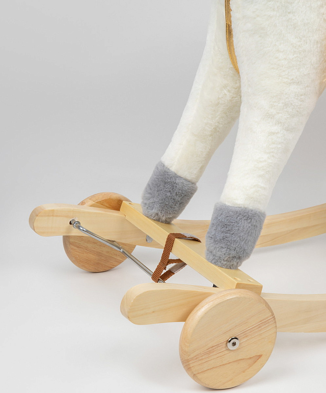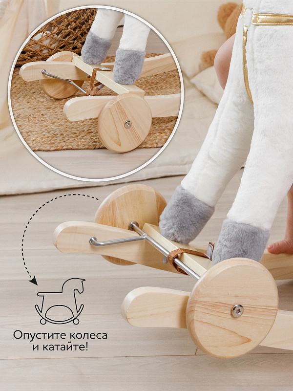 Единорог может использоваться как качалка, так и как каталка - достаточно перекинуть колеса под деревянные полозья.