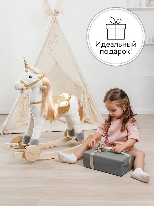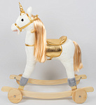 Лошадка каталка-качалка Amarobaby Unicorn, на колесах белый/золотой