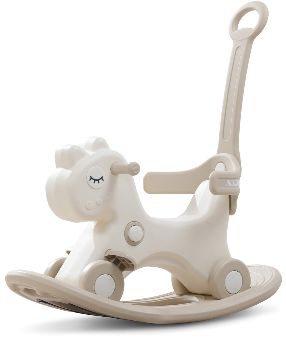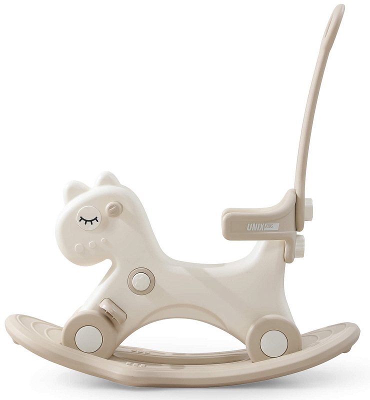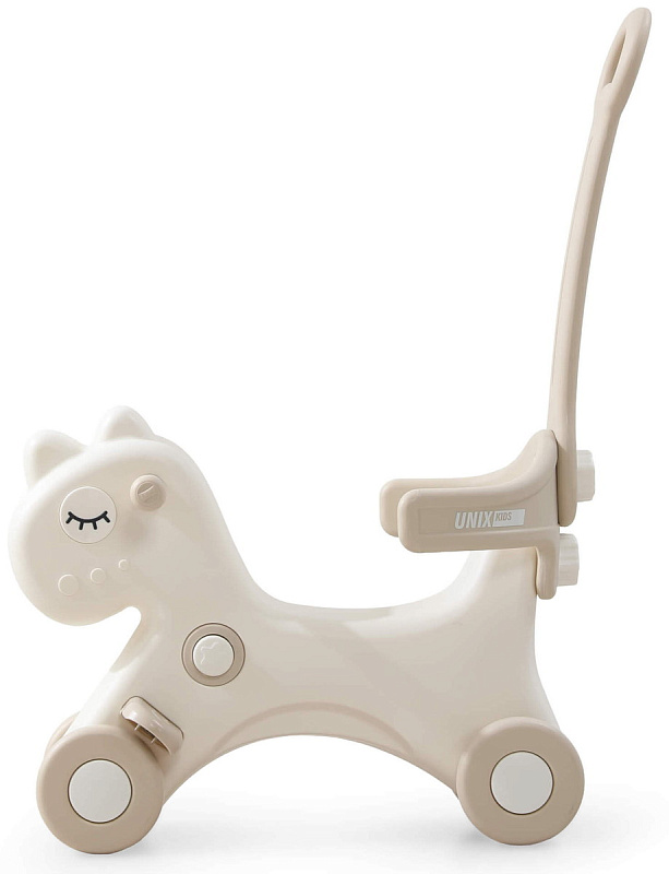 Лошадка-качалка-беговел Unix Kids - это отличное развлечение в сочетании с физическим развитием Вашего малыша! Лошадка имеет удобные спинку-держатель и педали для безопасности маленьких наездников и длинную ручку, за которую можно малыша качать. Так же ручка дает родителям возможность катить лошадку в формате беговела, если ребенок взял ее на улицу, а потом устал, накатавшись!