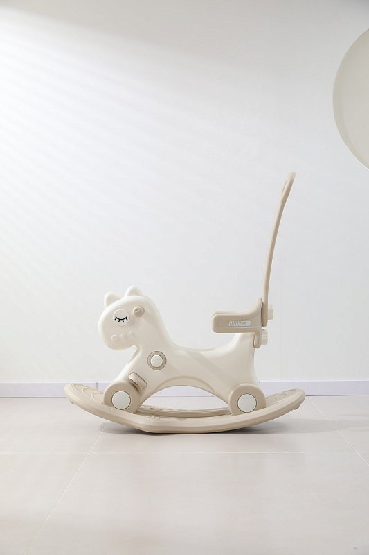 Как и другие детские товары марки Unix line, лошадка изготовлена из пищевого пластика 4-го класса — согласно классификации ГОСТ, гипоаллергенного и абсолютно безвредного даже для самых маленьких пользователей. Также этот материал не боится UV-лучей, и его можно использовать на улице.