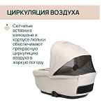 Правильная циркуляция воздуха в жаркие дни обеспечивается благодаря сетчатым вставкам на капюшоне и основании люльки. В холодные дни малыш надежно защищен благодаря съемному ветровому клапану на чехле.