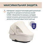 Капюшон люльки увеличивается в размере и имеет защиту от ультрафиолетовых лучей UV50+ и водоотталкивающее покрытие. Встроенный солнцезащитный козырек обеспечивает защиту ребенка от солнечных лучей и укусов комаров.