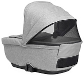 Капюшон люльки увеличивается в размере и имеет защиту от ультрафиолетовых лучей UV50+ и водоотталкивающее покрытие. Встроенный солнцезащитный козырек обеспечивает защиту ребенка от солнечных лучей и укусов комаров.
