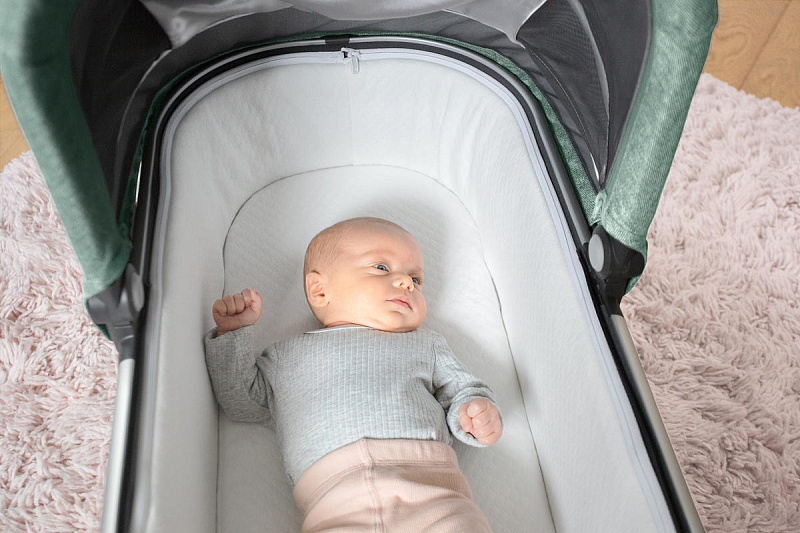Снятую с шасси люльку можно использовать как переноску благодаря наличию ручки на капоре. Капор люльки имеет две основные секции и две дополнительные (раскладываются при необходимости), которые надежно защитят ребенка от прямых солнечных лучей или сильного ветра. Идеально подходит для дневного сна во время прогулки. Обеспечивает комфортный отдых малыша в любую погоду.