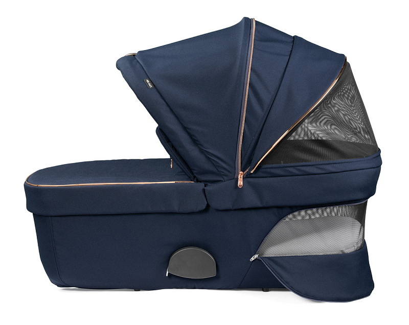 Большой капюшон с козырьком из солнцезащитного материала надежно защитит малыша от непогоды и от прямых солнечных лучей. Часть верхнего слоя капюшона отстегивается. Панорамная вставка из сеточки для комфортной температуры и правильной циркуляции воздуха в теплую погоду.