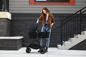 - Встроенные кнопки памяти и ручка для переноски позволяют легко отсоединить коляску от рамы.