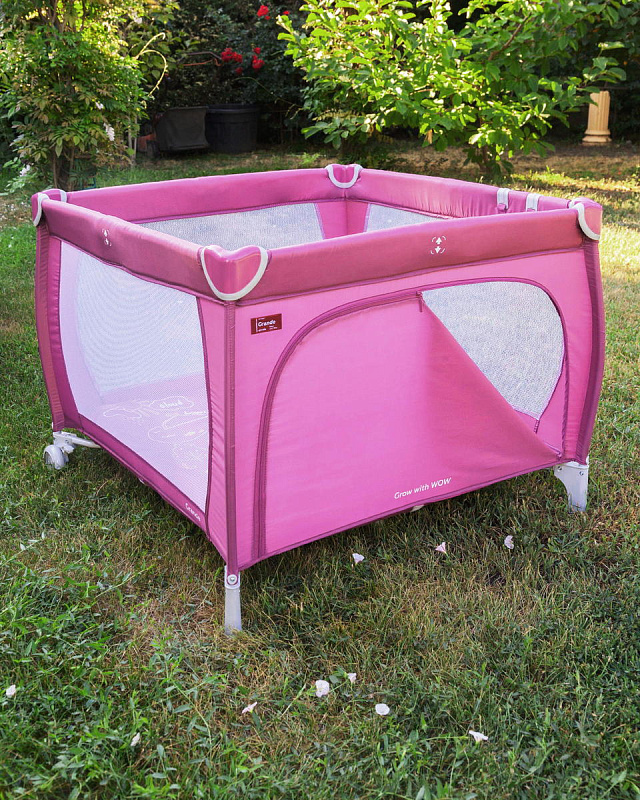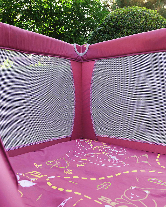 Этот манеж практичен и надежен, сделан из качественных материалов и имеет жесткое дно. К тому же он достаточно просторный. В нем грамотно продумана безопасность, все четыре угла защищены накладками, которые не дадут малышу пораниться. Устойчивые ножки исключают возможность манежу перевернуться. Прозрачный материал боковых стенок позволят маме наблюдать за ребенком и хорошо пропускают свет, а компактные размеры в сложенном виде помогут при транспортировке или спрятать в любое место.