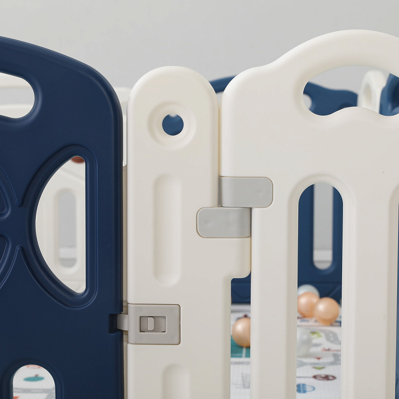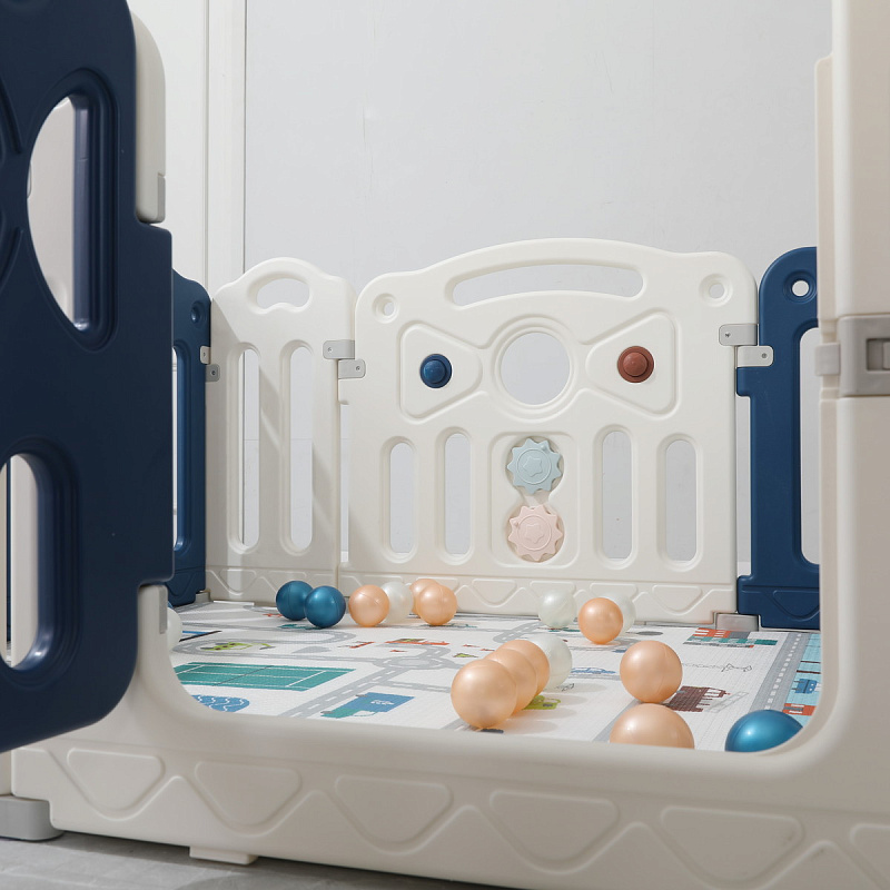 Все поверхности и высота манежа 67 см. спроектированы таким образом, чтобы максимально обезопасить ребенка от ушибов. Надежная конструкция, специальный фиксатор двери (входа в манеж), прочные соединители секций, противоскользящие опоры и специальные присоски создают идеальные условия для комфортного и безопасного времяпрепровождения юных исследователей мира.